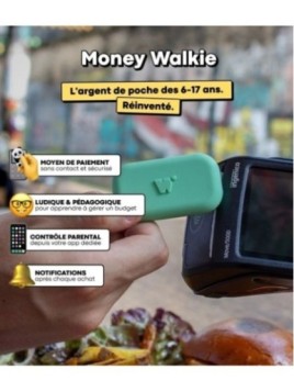 Prix 29,90 €Money Walkie, c'est le moyen de paiement préféré des enfants et des ados ! Relié à une application parent, le Walkie permet de payer sans contact partout, en toute sécurité. Suivez les dépenses, fixez un budget et donnez-lui confiance pas à pas. Commandez votre Walkie Surf (coque incluse) - conçu...