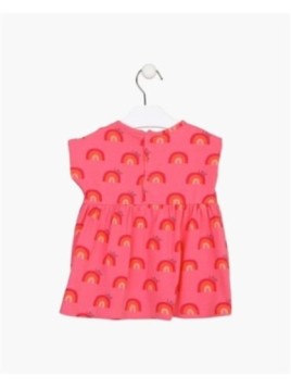 Prix 5,48 € Prix de base 10,95 €Robe loose effet large aux motifs arc en ciel sur un fond de robe corail Confort au top pour cette robe de chez LOSAN