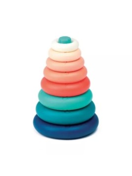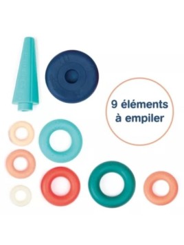 La jolie pyramide forme un jeu d'empilement et d'équilibre. Les 8 anneaux souples doivent être remis dans l'ordre sur la tige centrale.