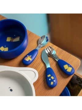 Set de trois couverts en silicone de la collection Puce & Pilou de Moulin Roty. Conçu en inox et silicone pour une bonne prise main pour manger comme les grands ! Illustré aux couleurs de la collection Puce et Pilou, le set passe au lave-vaisselle et est facile d'entretient. Le set contient...