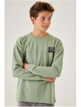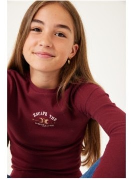 Prix 30,00 € Prix de base 59,99 €Tshirt à manches longues côtelées avec impression texte. Il est idéal pour cette saison. il a un décolleté rond et une coupe ajustée.