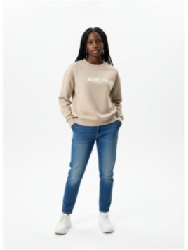 Prix 17,48 € Prix de base 34,95 €Pull sweat col rond coloris beige de chez LOSAN impression poitrine + impression Dos Idéal sur un jean