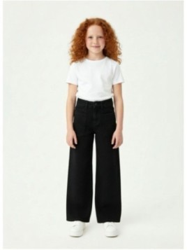 Prix 17,48 € Prix de base 34,95 €Jean Wide LEG de coloris Noir de chez LOSAN Taille haute ajustable avec élastiques au niveau de la ceinture Poches avant et arrière