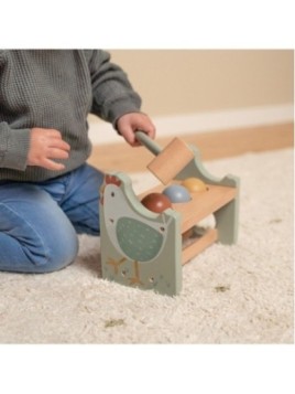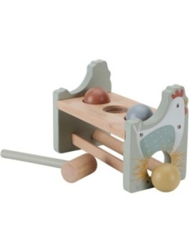 Prix 19,00 €- Toc toc toc ! Frappe les 3 boules dans le banc à marteler en bois avec le marteau. - C'est un bon exercice pour la motricité de votre enfant. - Toutes les balles ont-elles été frappées ? Remettez les balles et recommencez.