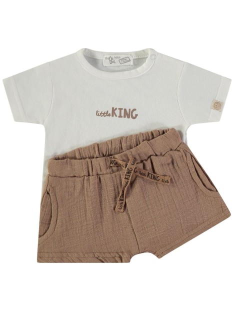 T-shirt blanc & marron "Little King"
