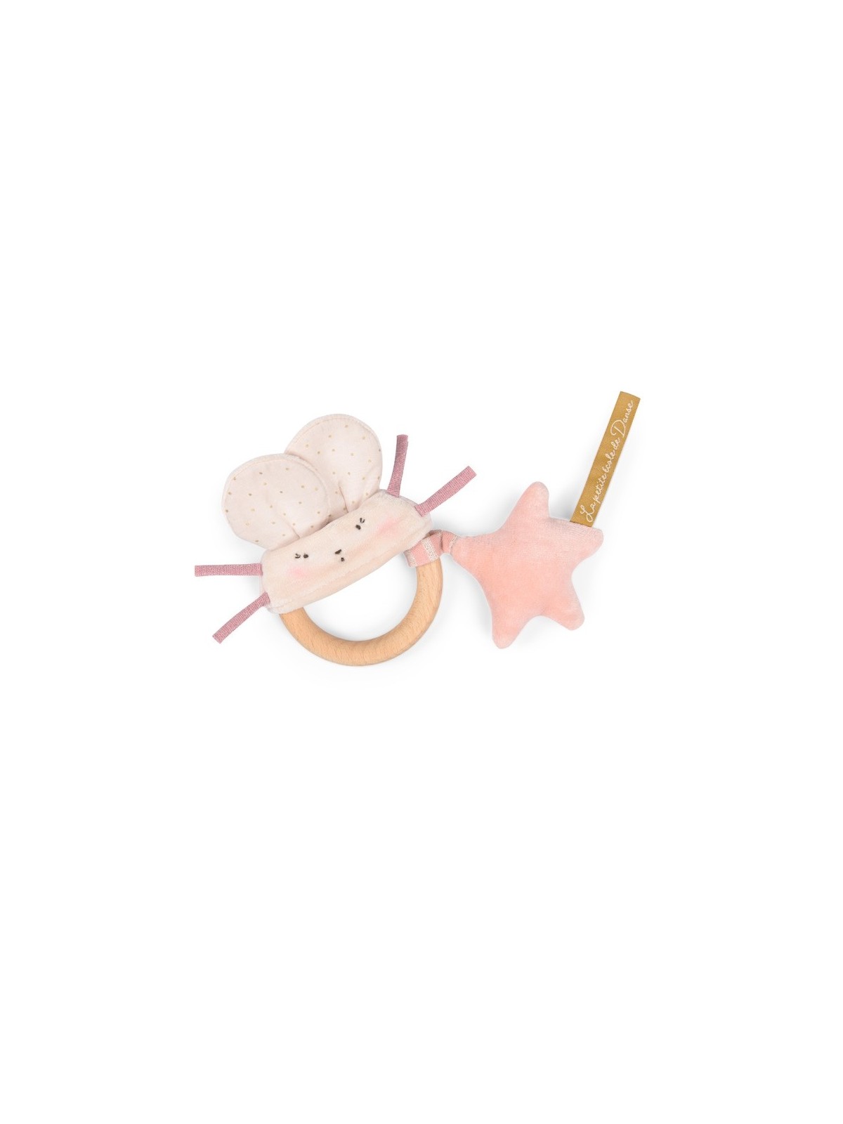 Hochet bois souris, accompagné de son étoile qui émet un joli son de grelot.