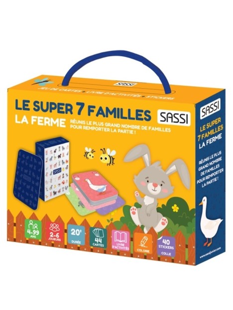 Le célèbre jeu des 7 familles présenté dans une version parfaite pour les petits et dans une variante encore plus amusante ! 44 cartes à jouer illustrées d'animaux de la ferme et rassemblées dans un étui pratique, accompagnées d'un livre de 16 pages rempli d'activités et de 40 autocollants.