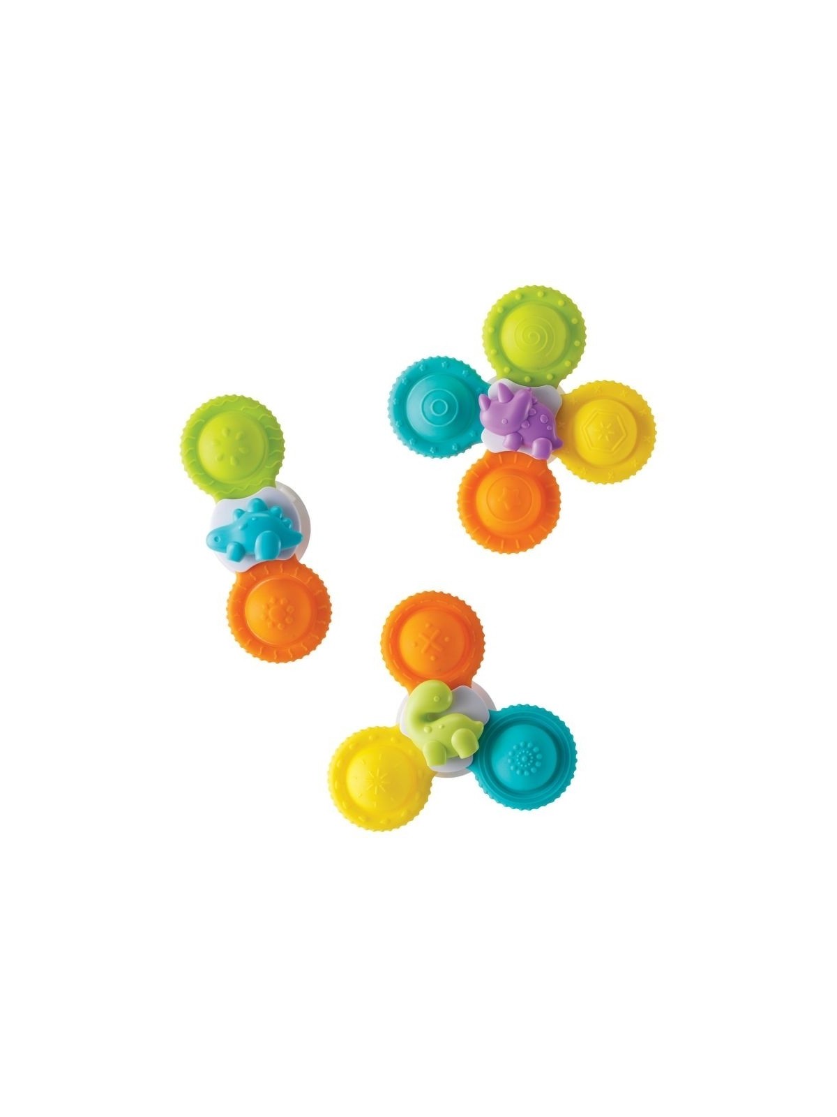 Les spinners en silicone infantino sont conçus pour captiver bébé et encourager sa dextérité.