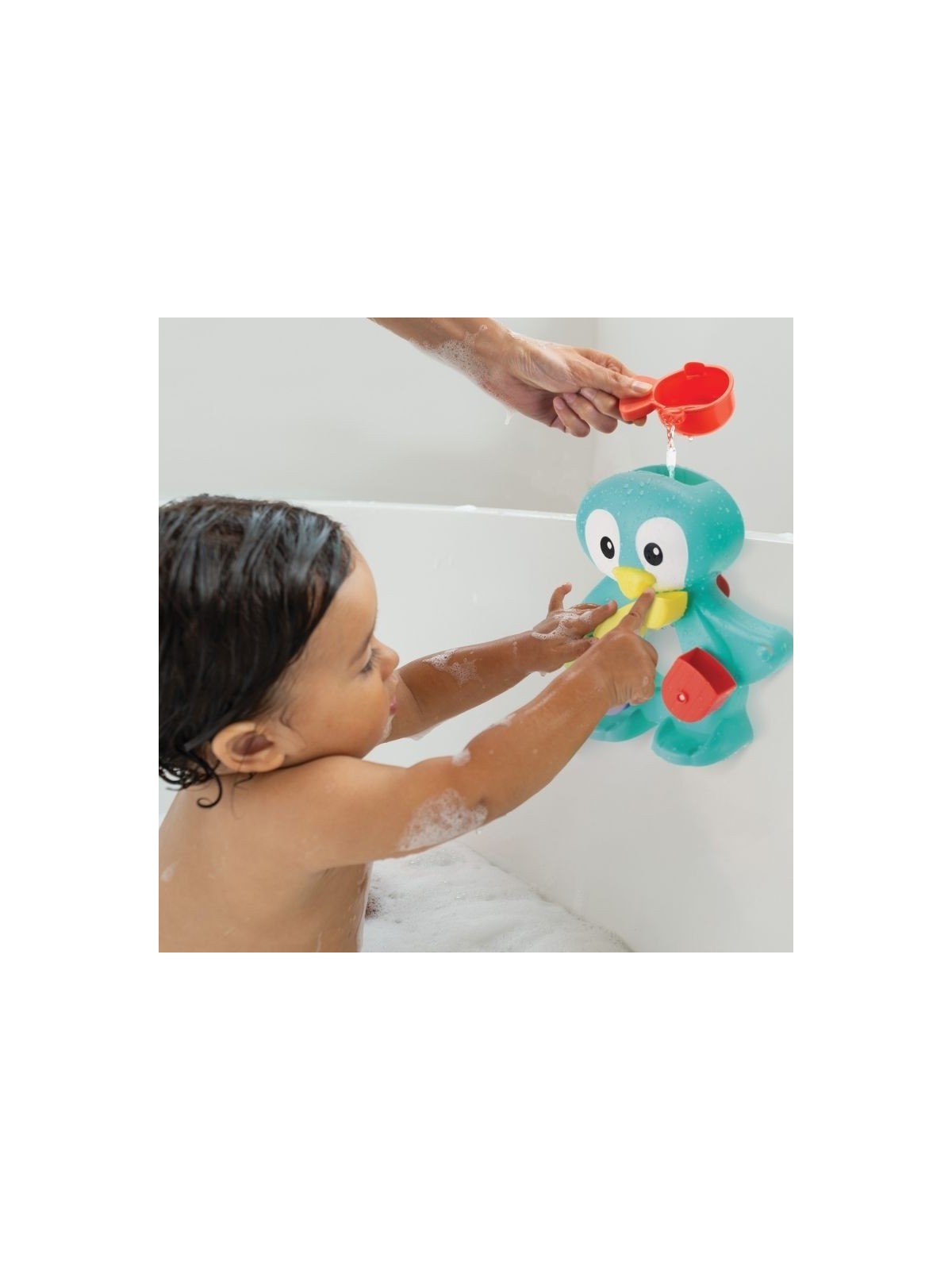 Pour que l'heure du bain soit plus amusante, le pingouin rigolo divertira bébé tout en l'aidant à développer sa dextérité, sa coordination et sa conscience du lien de cause à effet.
