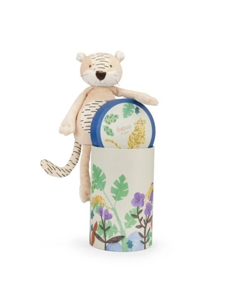 Avec son allure un brin paresseuse, sa fourrure crème moelleuse et ses rayures graphiques, ce tendre tigre invite naturellement aux câlins et aux moments de réconfort. Facile à attraper et agréable au toucher, il devient rapidement un compagnon rassurant pour jouer, s'endormir ou partir à l'aventure. Présenté dans une jolie boîte illustrée à l'aquarelle par l'artiste élodie Coudray, Baboo est aussi une excellente idée de cadeau de naissance ou d'anniversaire.