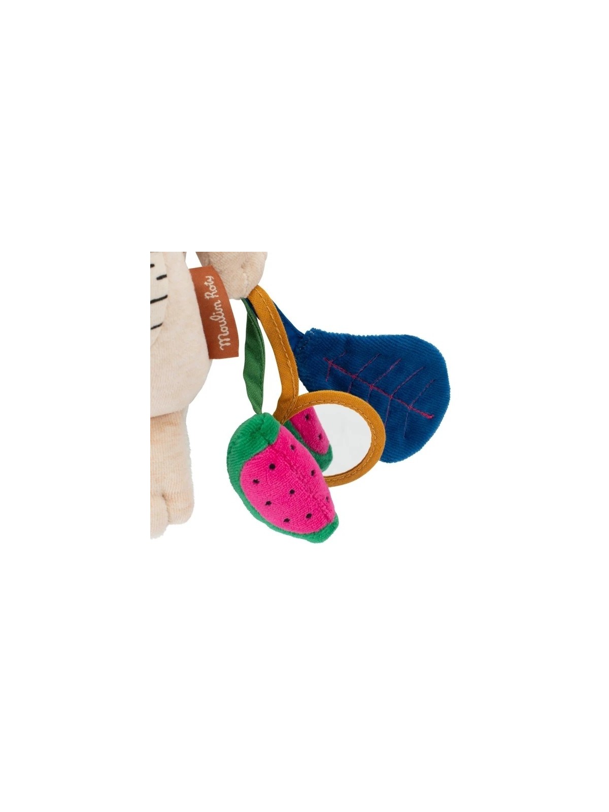 Craquez pour la peluche d'activités à suspendre Tigre Baboo de la collection La Forêt Mawa de Moulin Roty, un compagnon d'éveil ludique et sensoriel pour bébé.