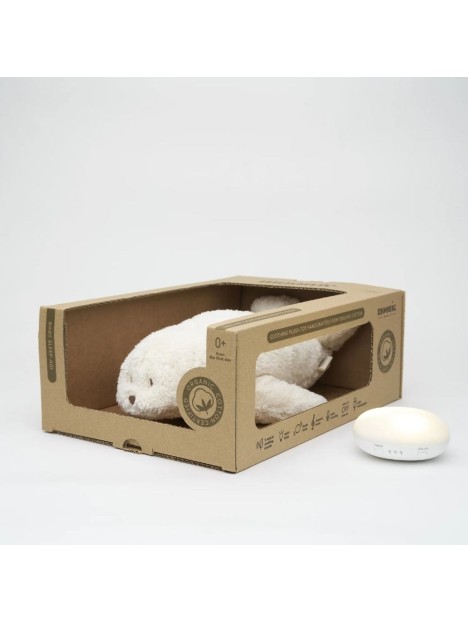 NOUVEAU : la peluche phoque Moonie est un compagnon magique pensé pour aider les bébés à s'endormir et passer des nuits paisibles. Conçue en coton biologique européen de qualité supérieure, cette peluche apaisante associe douceur, sécurité et solidité, idéale dès la naissance.