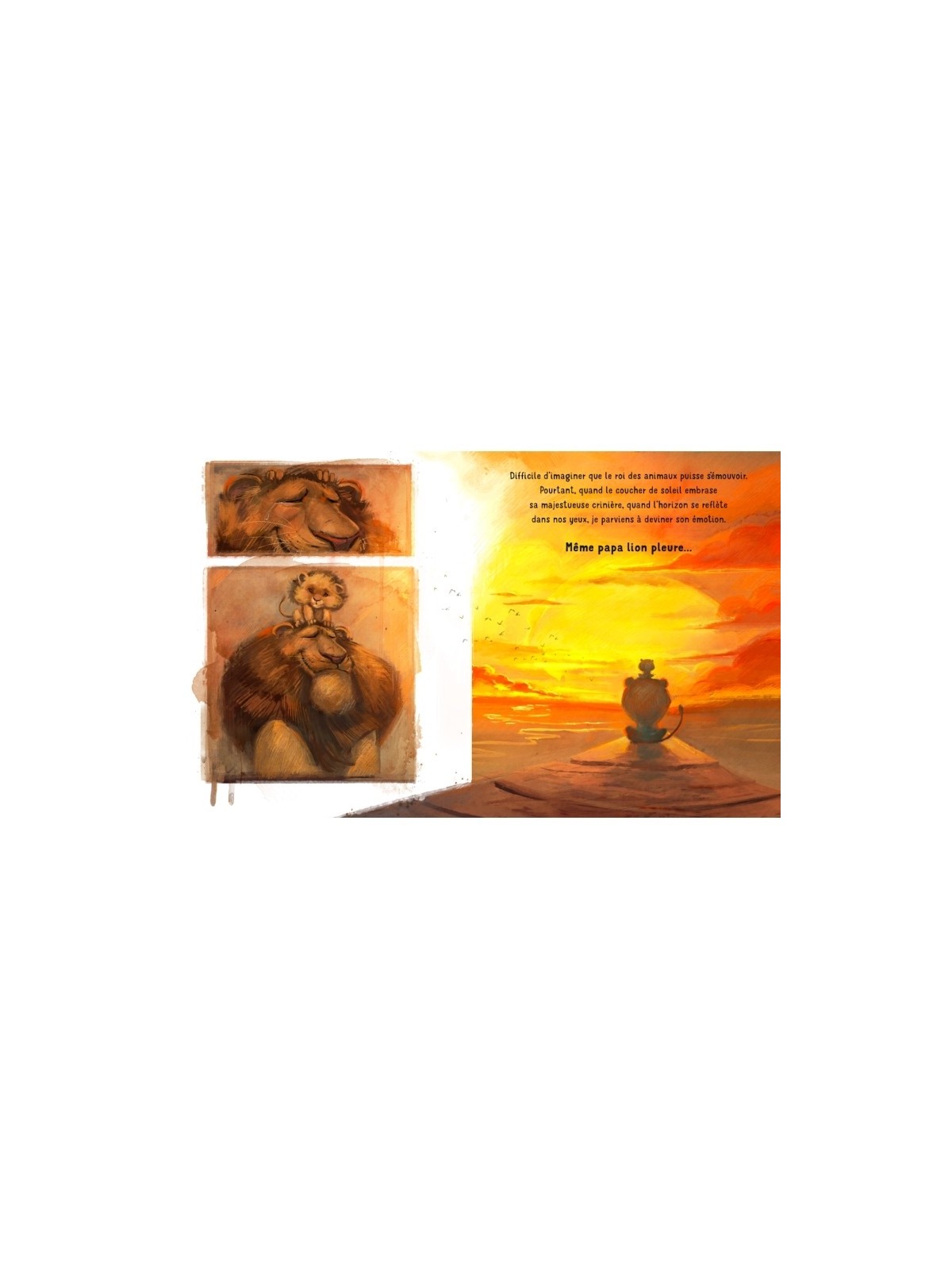 Et pourtant, tous les papas pleurent, même s'ils sont forts comme des lions, piquants comme des hérissons, vigilants comme des hiboux et courageux comme des gorilles.