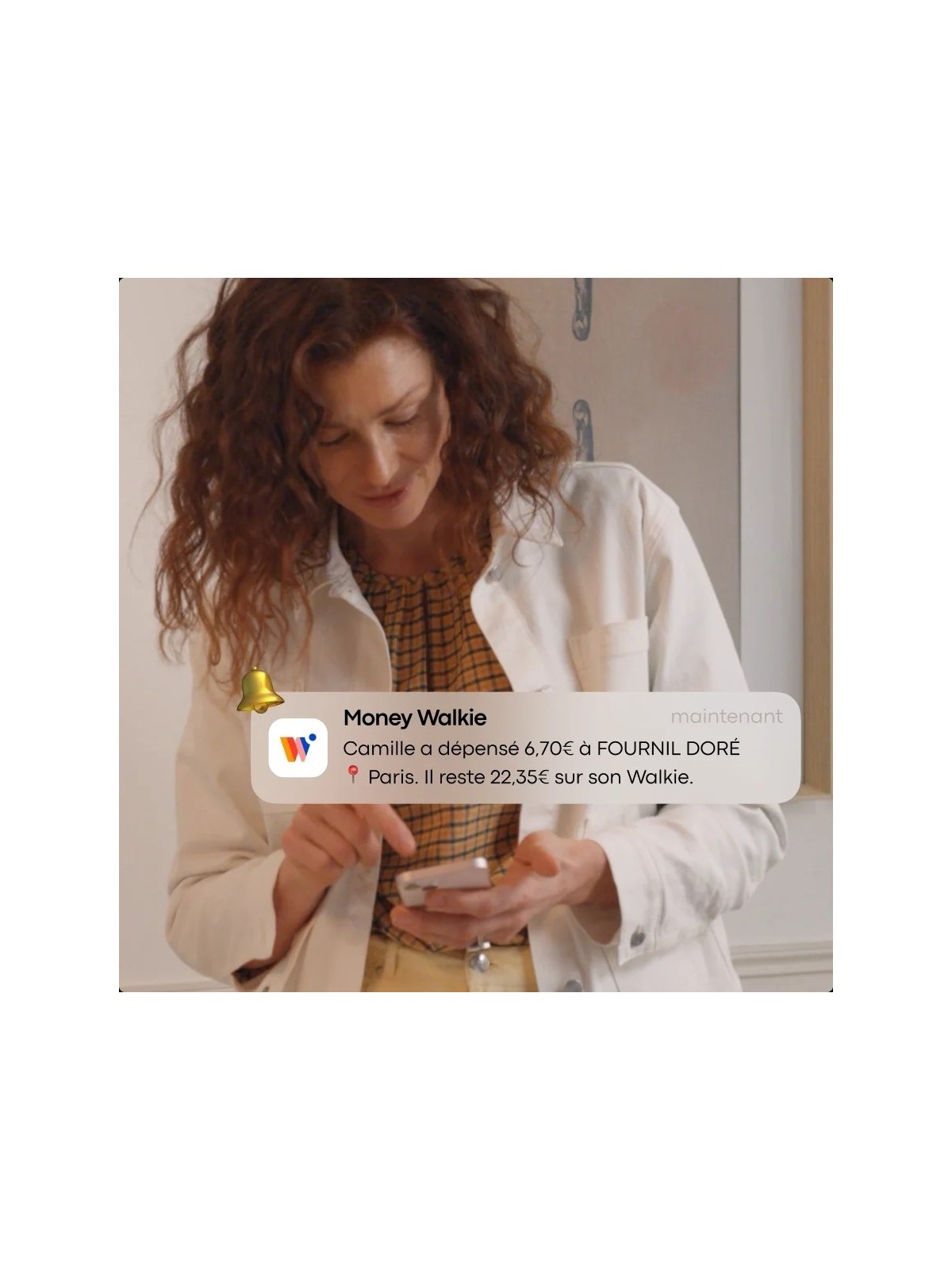 Rechargez et bloquez le Walkie instantanément et à distance, encadrez son usage en fixant des plafonds. Et vous recevez une notification à chaque achat pour suivre ses dépenses en temps réel.