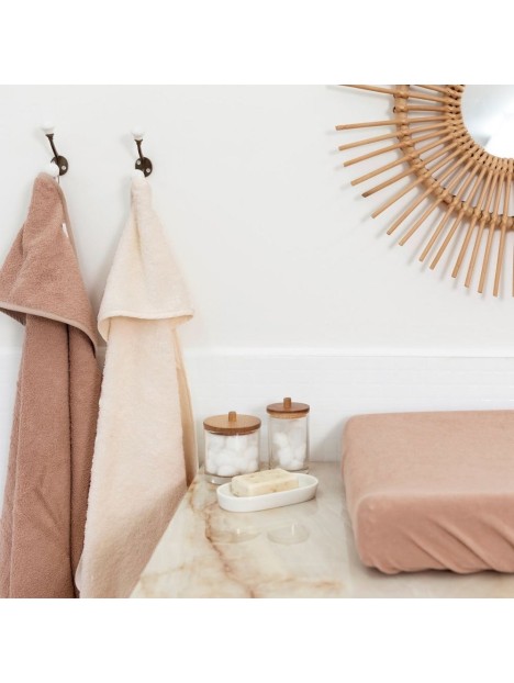 Douce et absorbante, la cape en éponge enveloppe bébé de tendresse pour faire de chaque sortie du bain un moment de pur bonheur.