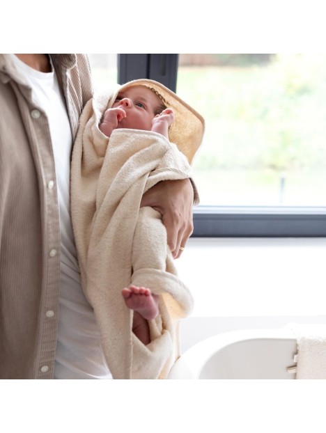 Elle essuie chaque petit pli avec délicatesse et garde bébé bien au chaud grâce à sa capuche moelleuse.