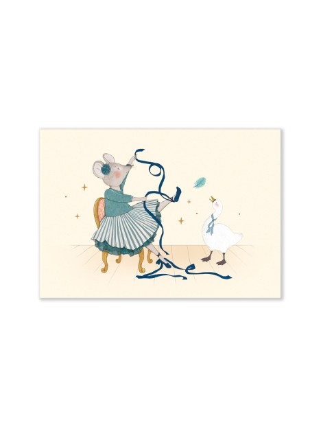 Affiches illustrées de petites souris et leurs amis cygnes représentant l'univers délicat et poétique de la collection la petite école de danse. Imprimé en France à base d'encres végétales sur du papier certifié FSC.