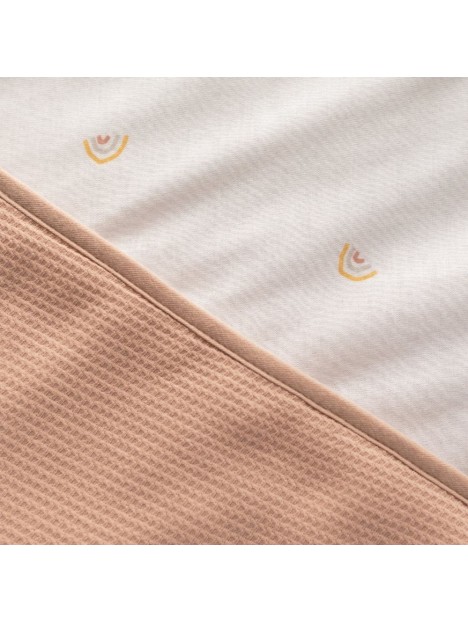 Tendrement ouatiné et doublé de coton organique, le gaufré de coton biolgique procure une agréable chaleur idéale pour une température de chambre entre 16 et 19°C.