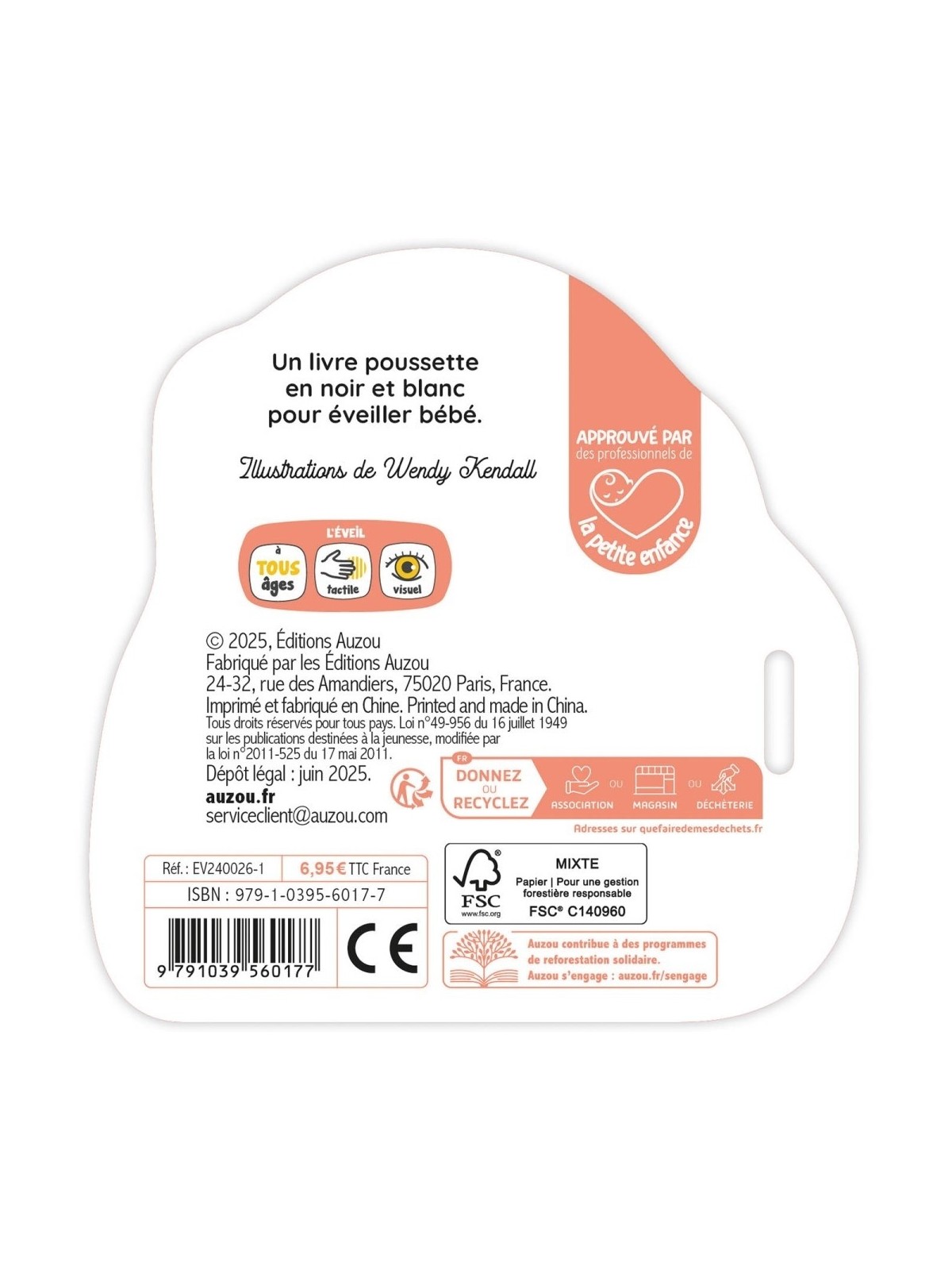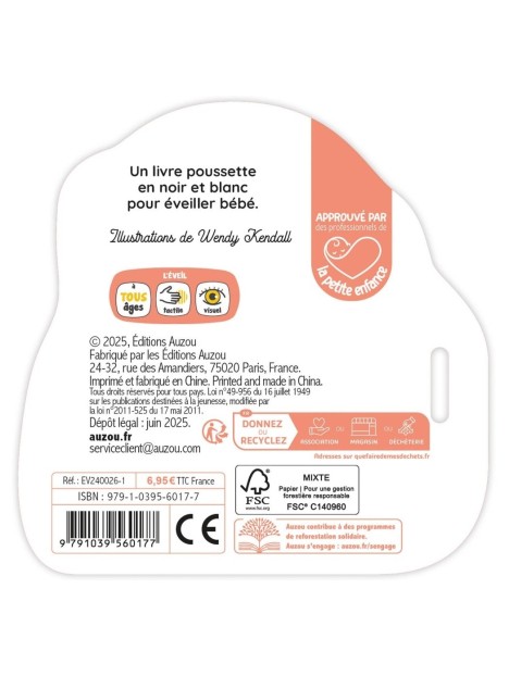 Les illustrations contrastées permettent un éveil visuel dès la naissance, et les pages en mousse colorées (accessibles à travers de petites découpes présentent sur chaque page) participent à l'éveil tactile de bébé.