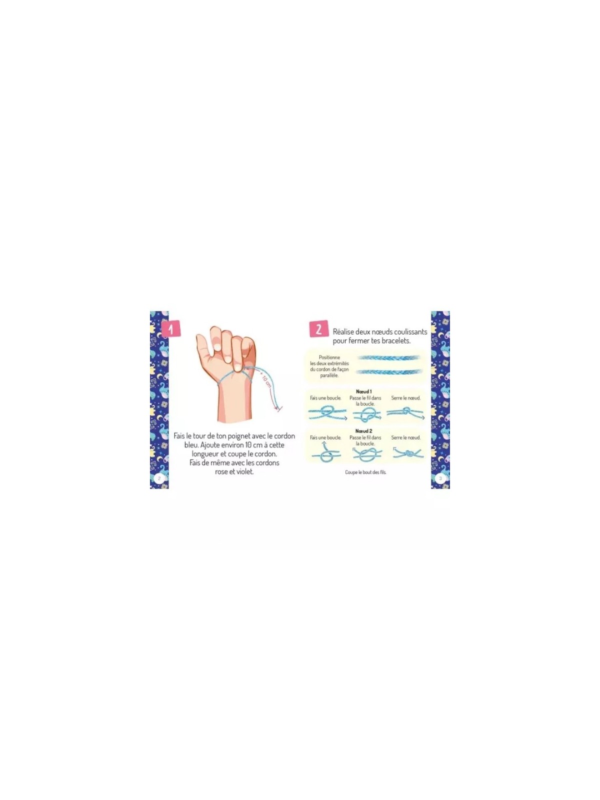 Réalise une magnifique petite accumulation de bracelets enchantés grâce aux charms mille et une nuits ! Matériel : 6 charms mille et une nuits ; 3 couleurs de fils pailletés.