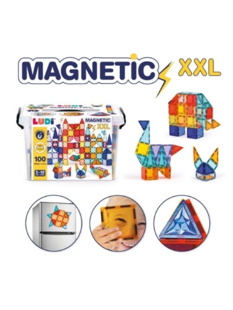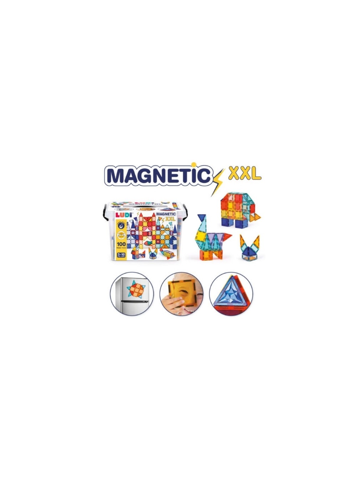 Jeu de construction magnétique enfant XXL LUDI : 100 pièces aimantées colorées pour créer en 2D et 3D dès 3 ans. Stimule imagination, motricité fine et pensée logique.