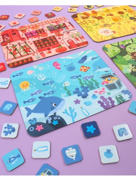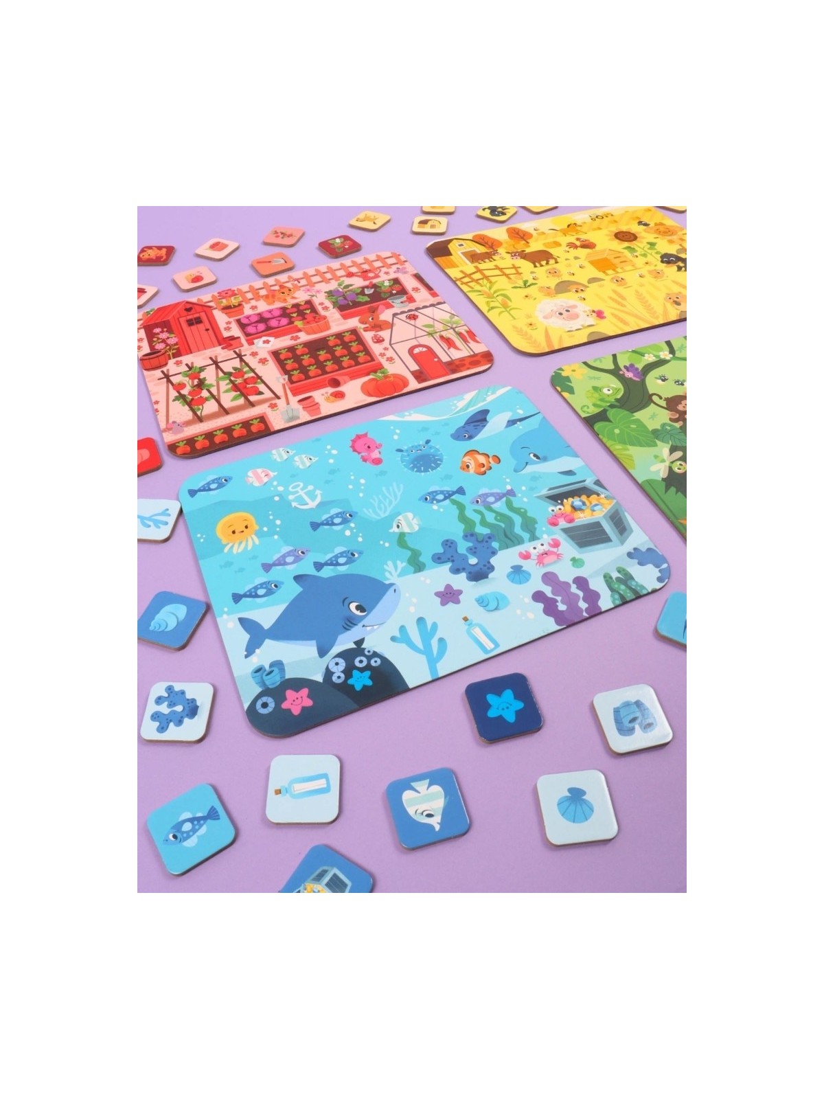 Pars à la découverte du monde des couleurs et retrouve 60 éléments différents sur 4 planches colorées recto verso !