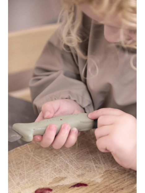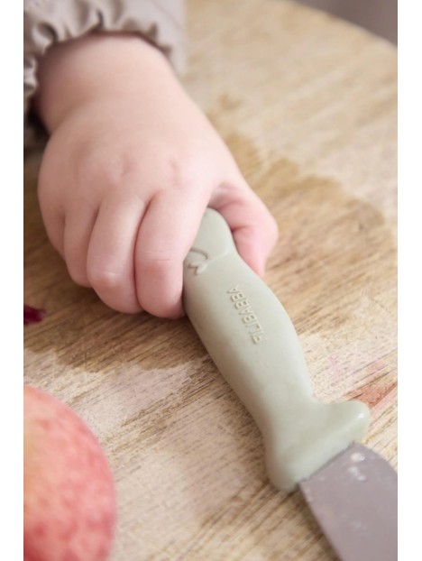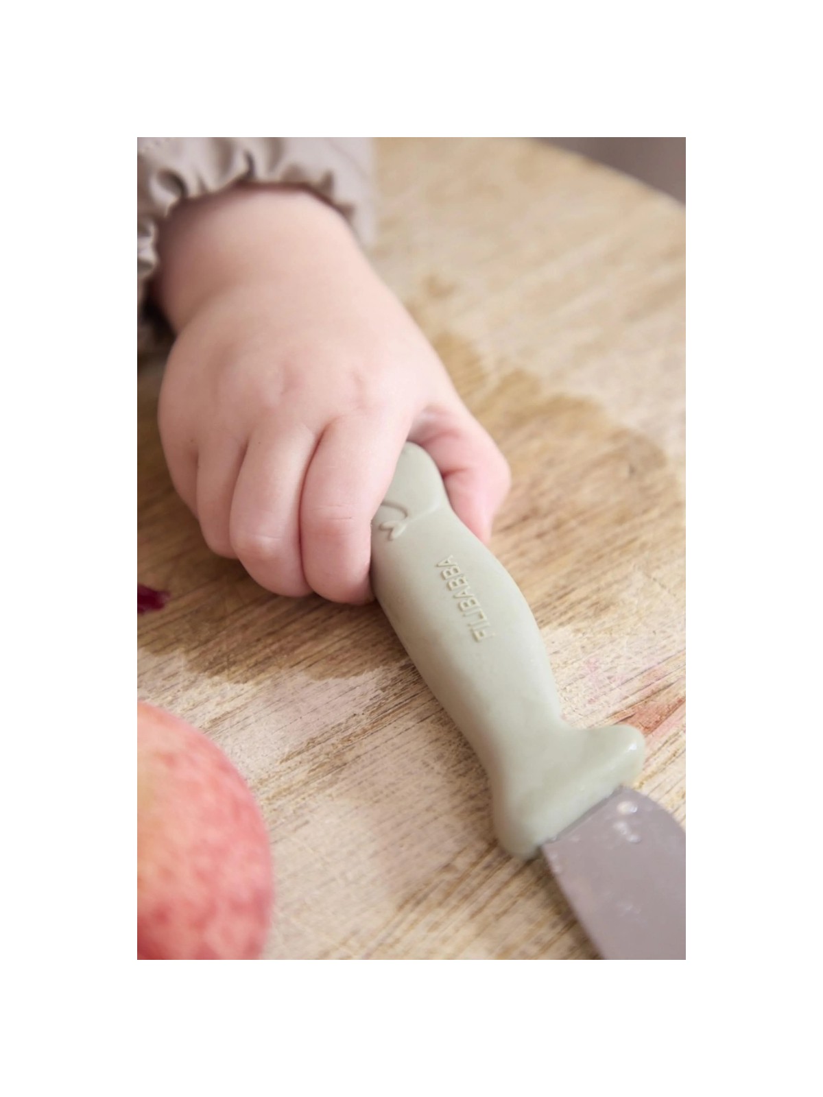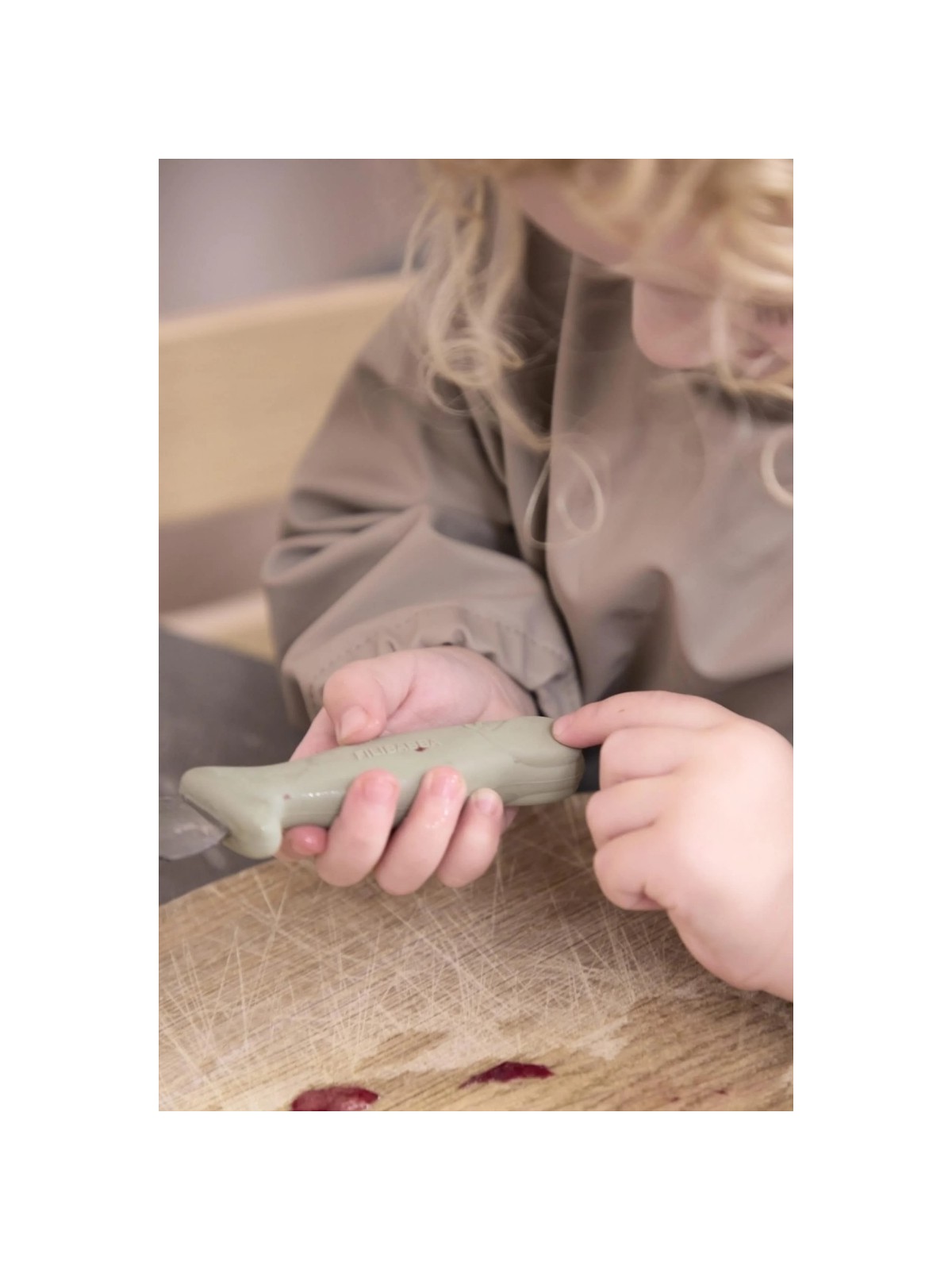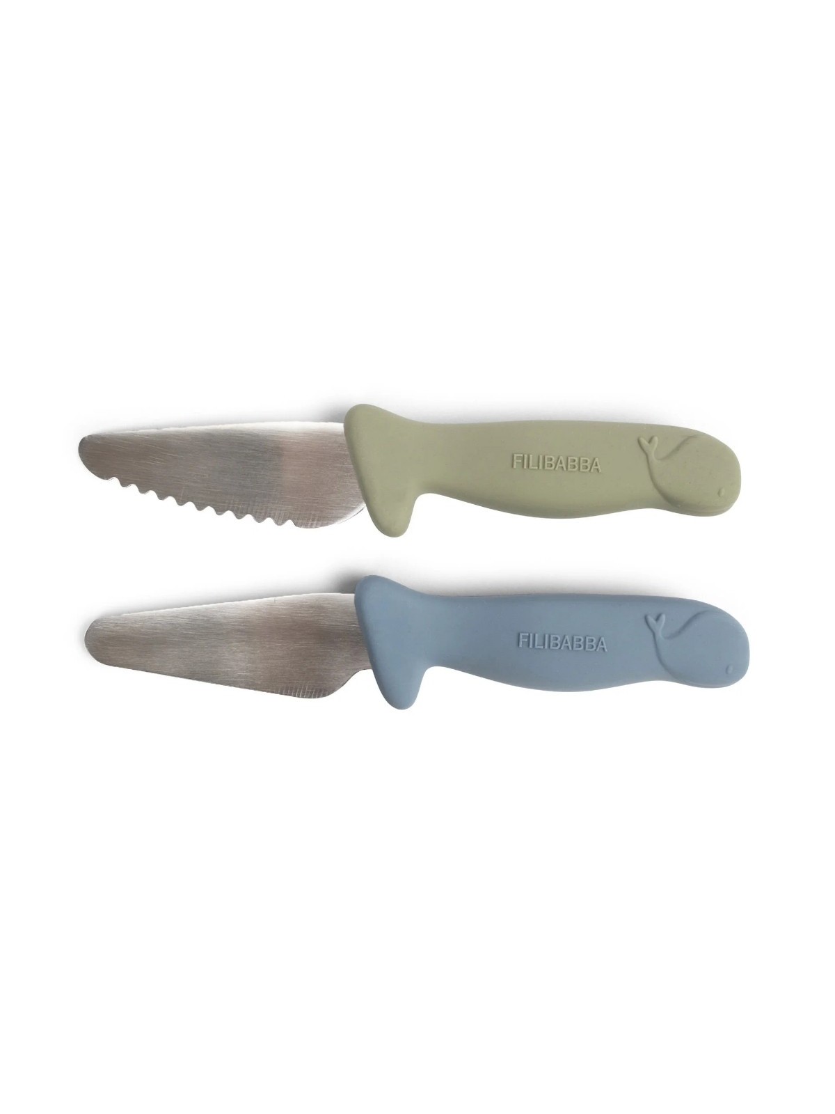 Ce set de couteaux pour débutants comprend un couteau dentelé et un couteau avec une lame en acier inoxydable « classique » qui peut couper des fruits et légumes. Les poignées en silicone souple, dotées d'une barrière de sécurité entre la lame et les doigts, sont faciles à tenir pour les petites mains.