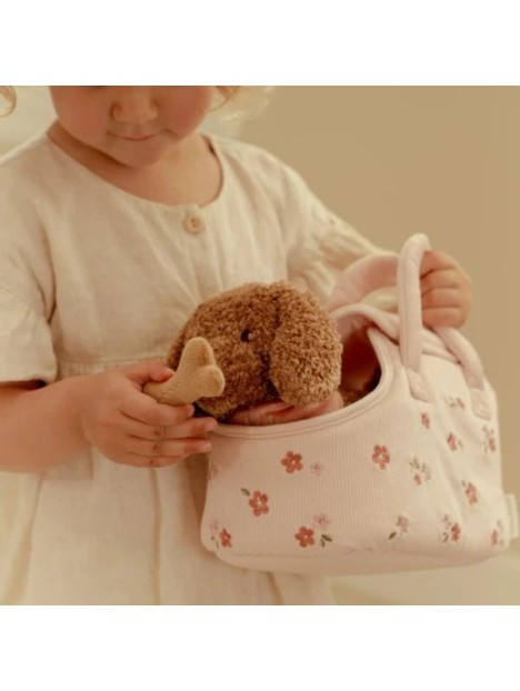 Emmenez votre fidèle compagnon à quatre pattes partout avec vous grâce à ce chien en peluche adorable Jackie dans un sac de transport fleuri ! Grâce au tissu doux et à son visage adorable, il deviendra rapidement l'animal en peluche préféré de votre petit. Le sac a une ouverture pratique à l'avant, permettant à la tête du chien de regarder curieusement à l'extérieur.