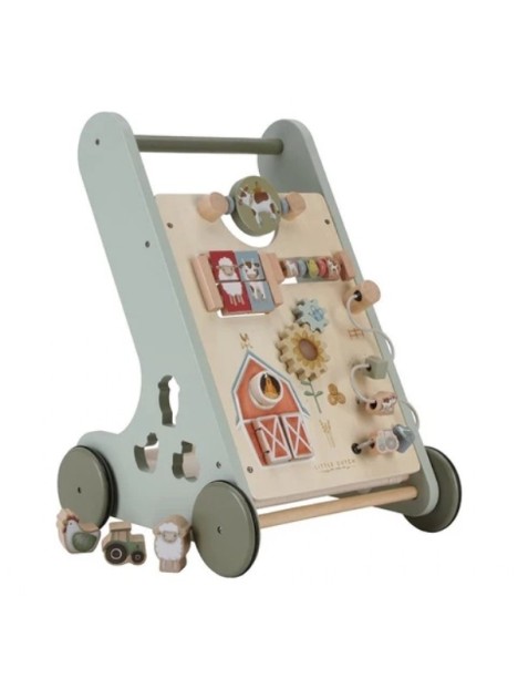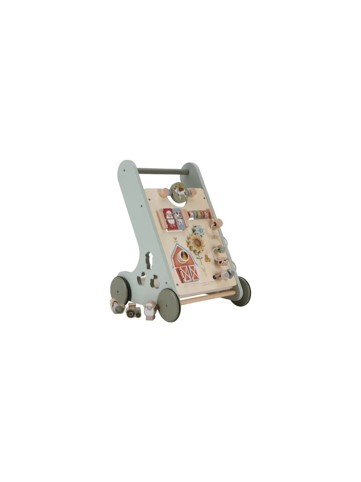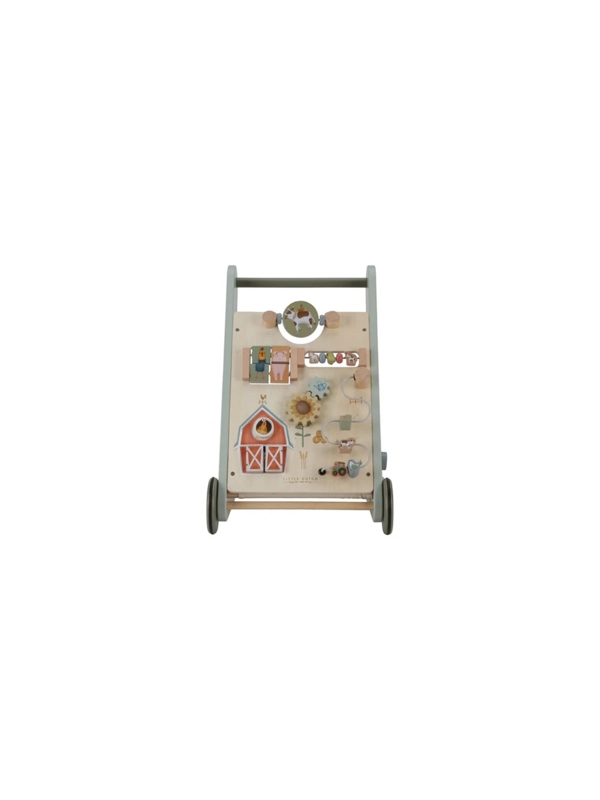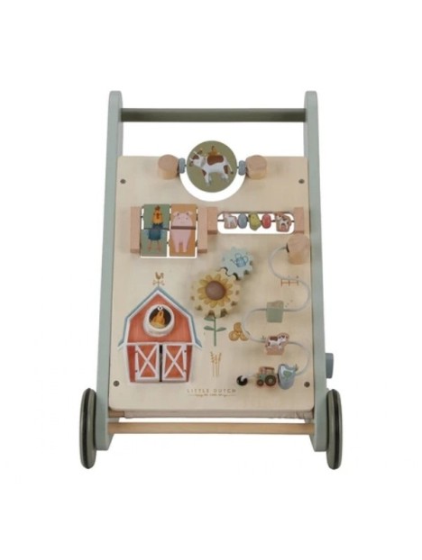 Ce chariot de marche en bois avec activités offre diverses activités stimulantes qui soutiennent le développement de la motricité de votre enfant.