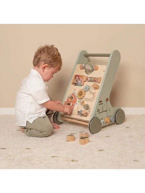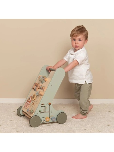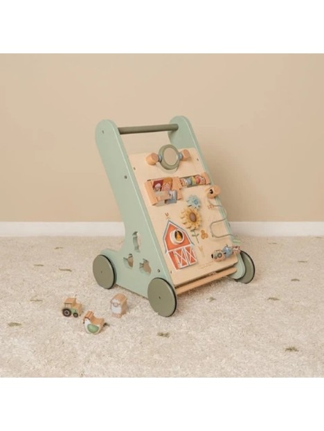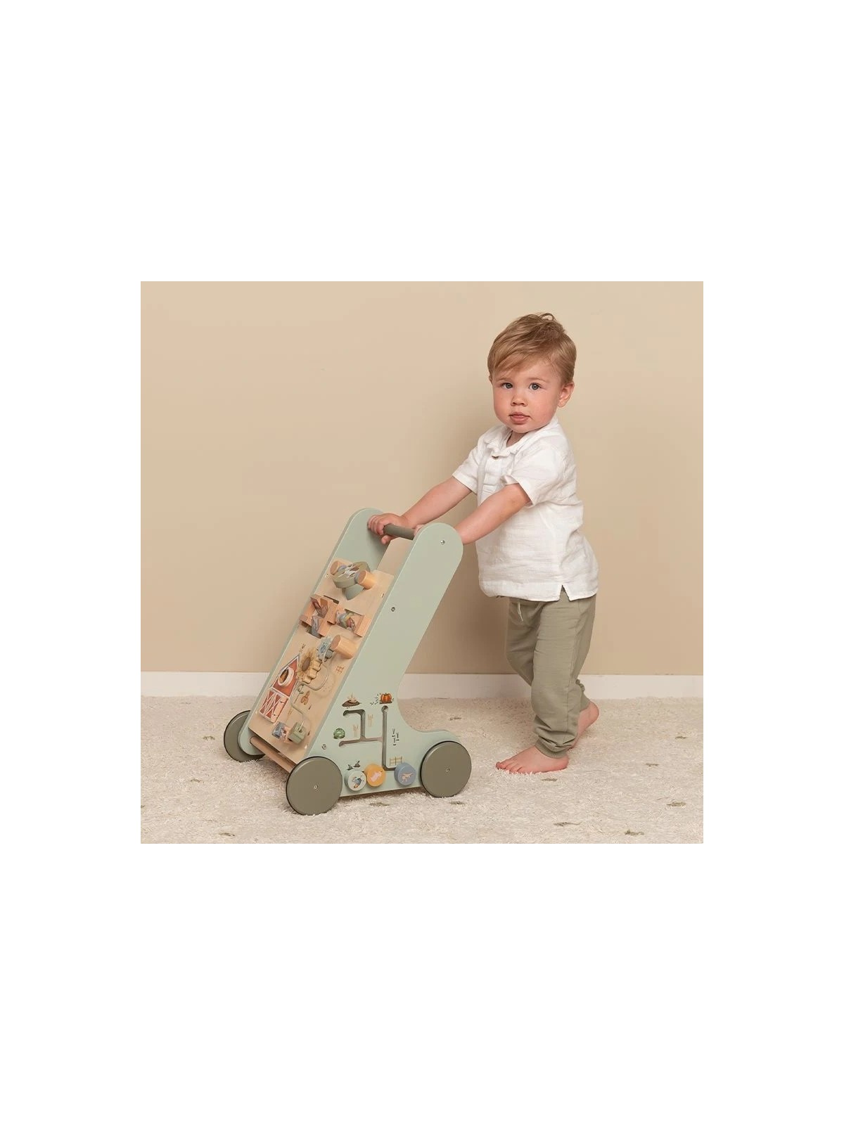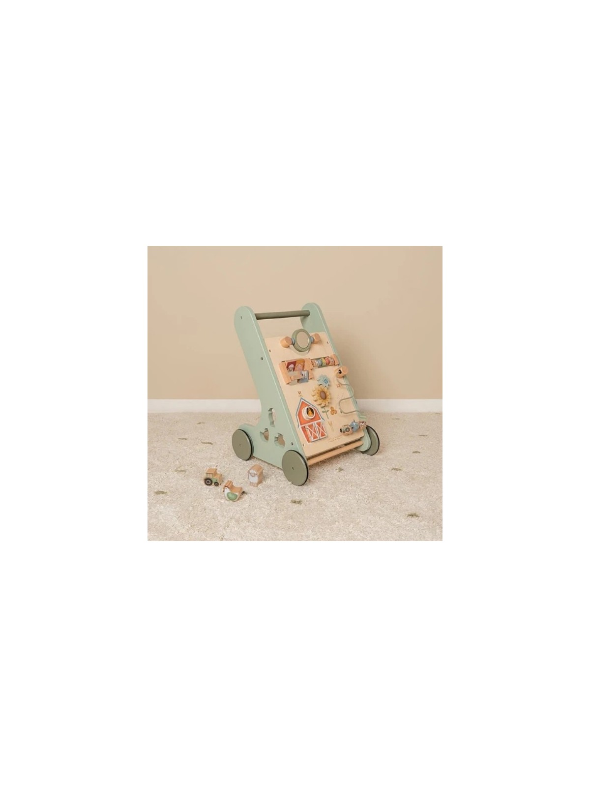 Ce chariot de marche en bois avec activités offre diverses activités stimulantes qui soutiennent le développement de la motricité de votre enfant.