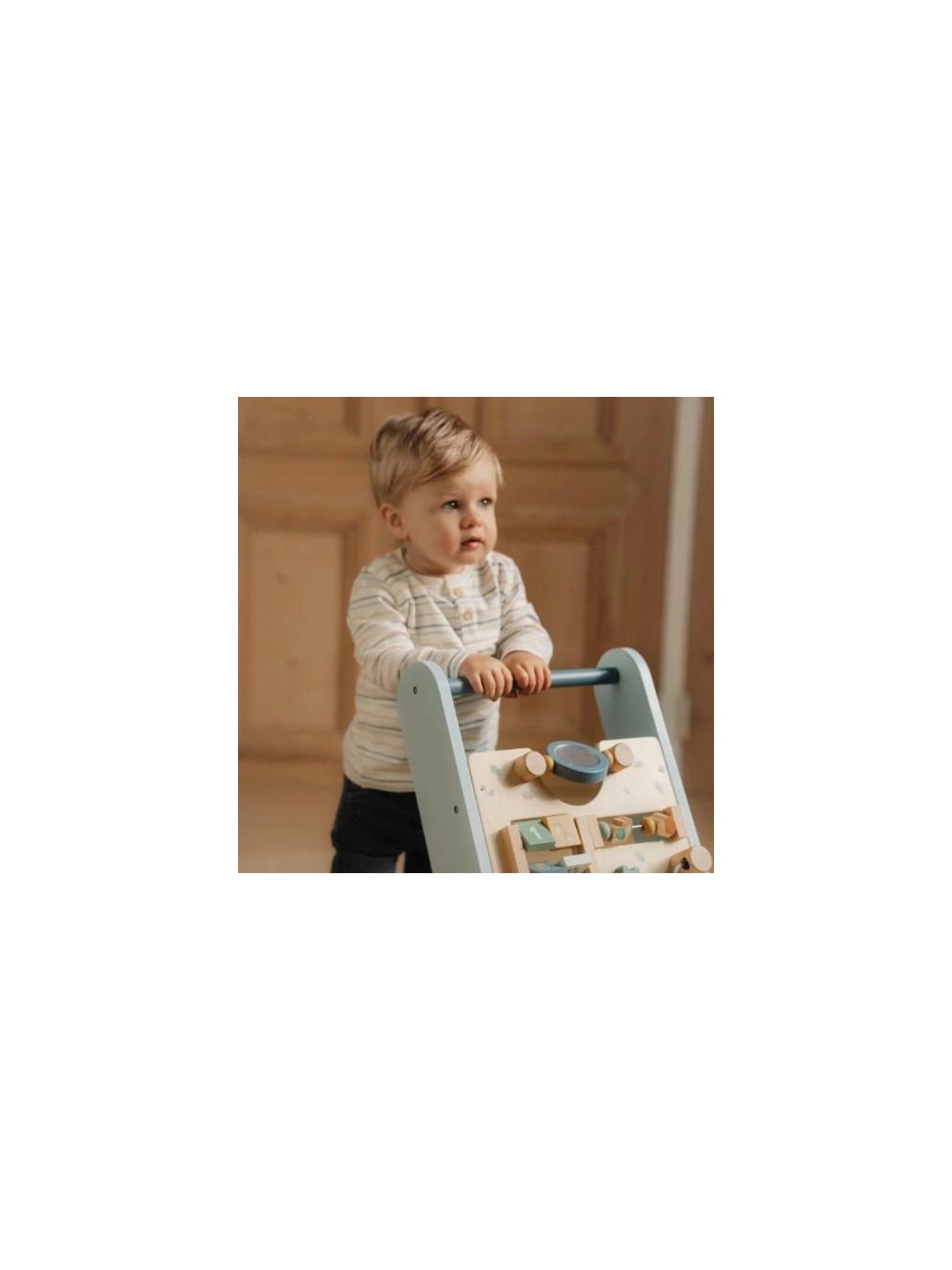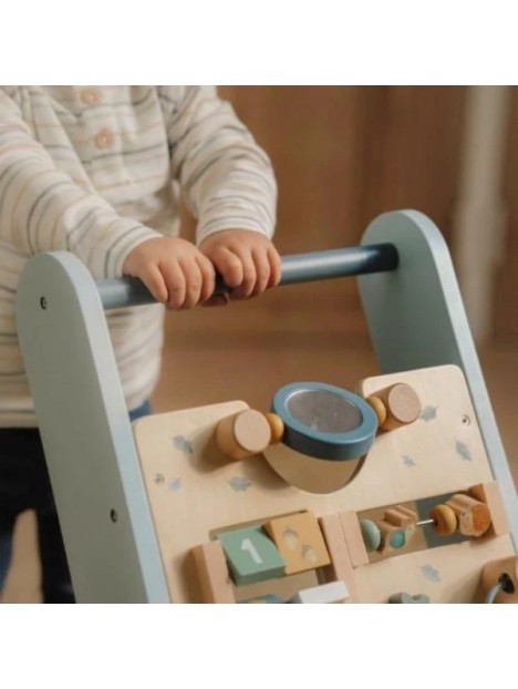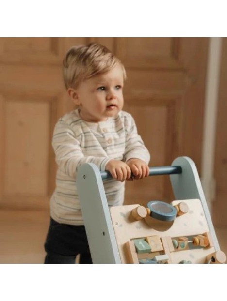 Ce trotteur en bois offre différentes activités stimulantes qui soutiennent le développement de la motricité de votre enfant.