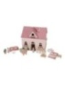 Grâce à la fermeture en bois, la maison de poupée s'ouvre et se ferme facilement, et grâce à la poignée, elle est facile à emporter partout. Le mobilier est inclus, mais il existe également des ensembles d'extension supplémentaires disponibles pour décorer encore plus la maison.