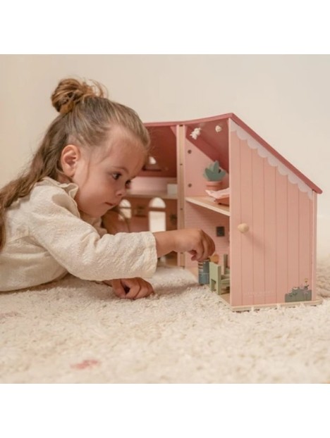 La maison de poupée portable en bois de Little Dutch est une adorable petite maison rose avec de jolis détails.