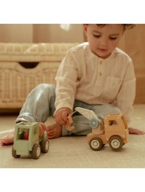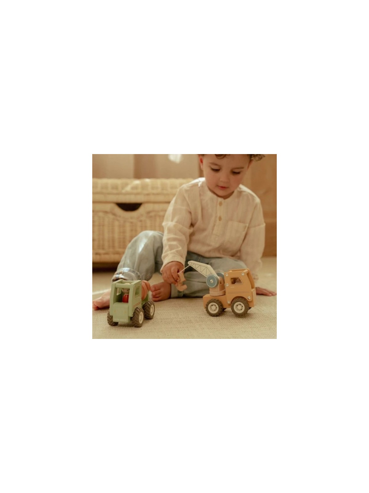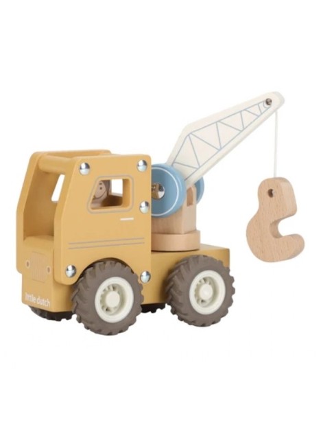 Soulevez et déplacez des charges lourdes avec cette grue robuste ! Le camion-grue en bois a un bras pivotant et est livré avec un ouvrier du bâtiment. Les roues en caoutchouc assurent une conduite en douceur sur le chantier. Conduisez jusqu'au port, chargez les conteneurs et placez-les au bon endroit. Combinez ce jouet grue avec les autres véhicules de construction pour un plaisir de jeu sans fin. La construction peut commencer !
