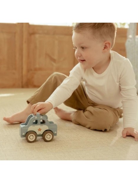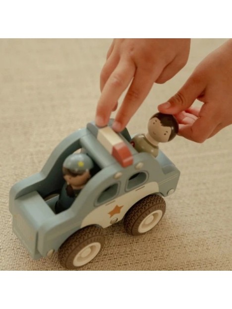 Ce jouet de voiture de police est parfait pour les jeux de rôle et se combine parfaitement avec le commissariat de police en bois. Qui allez-vous aider aujourd'hui en ville?