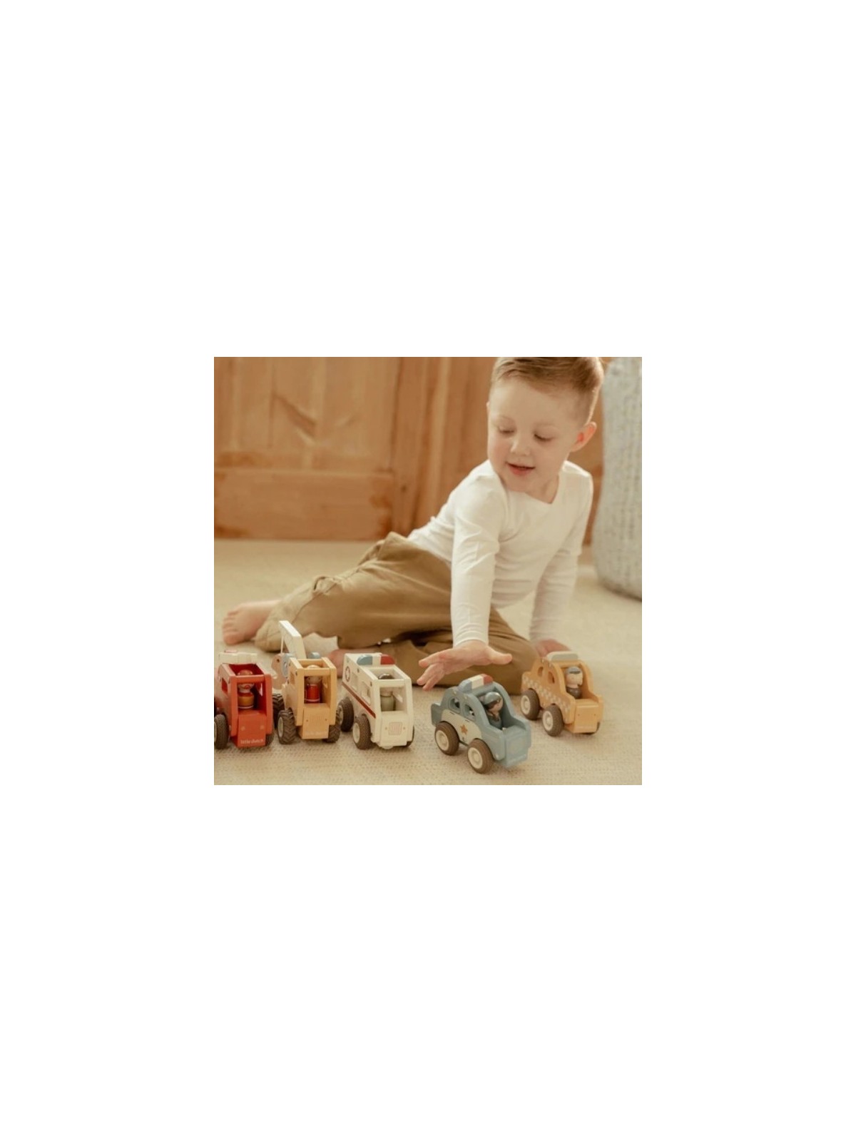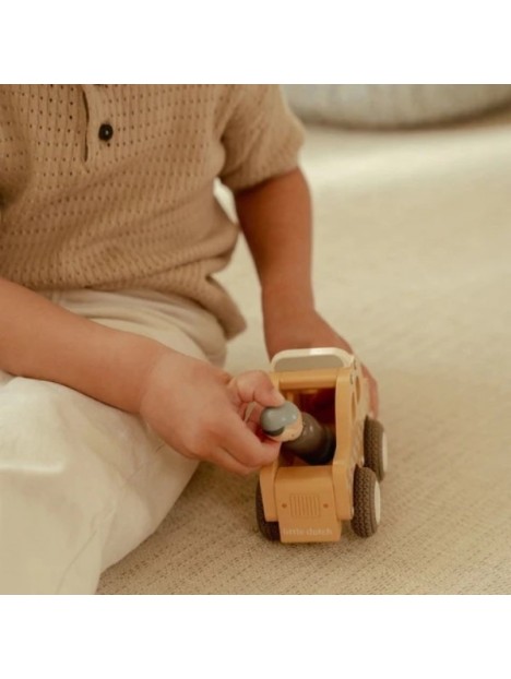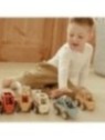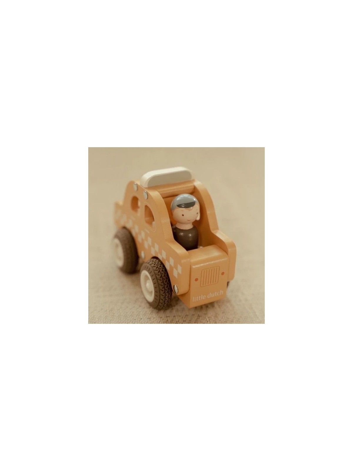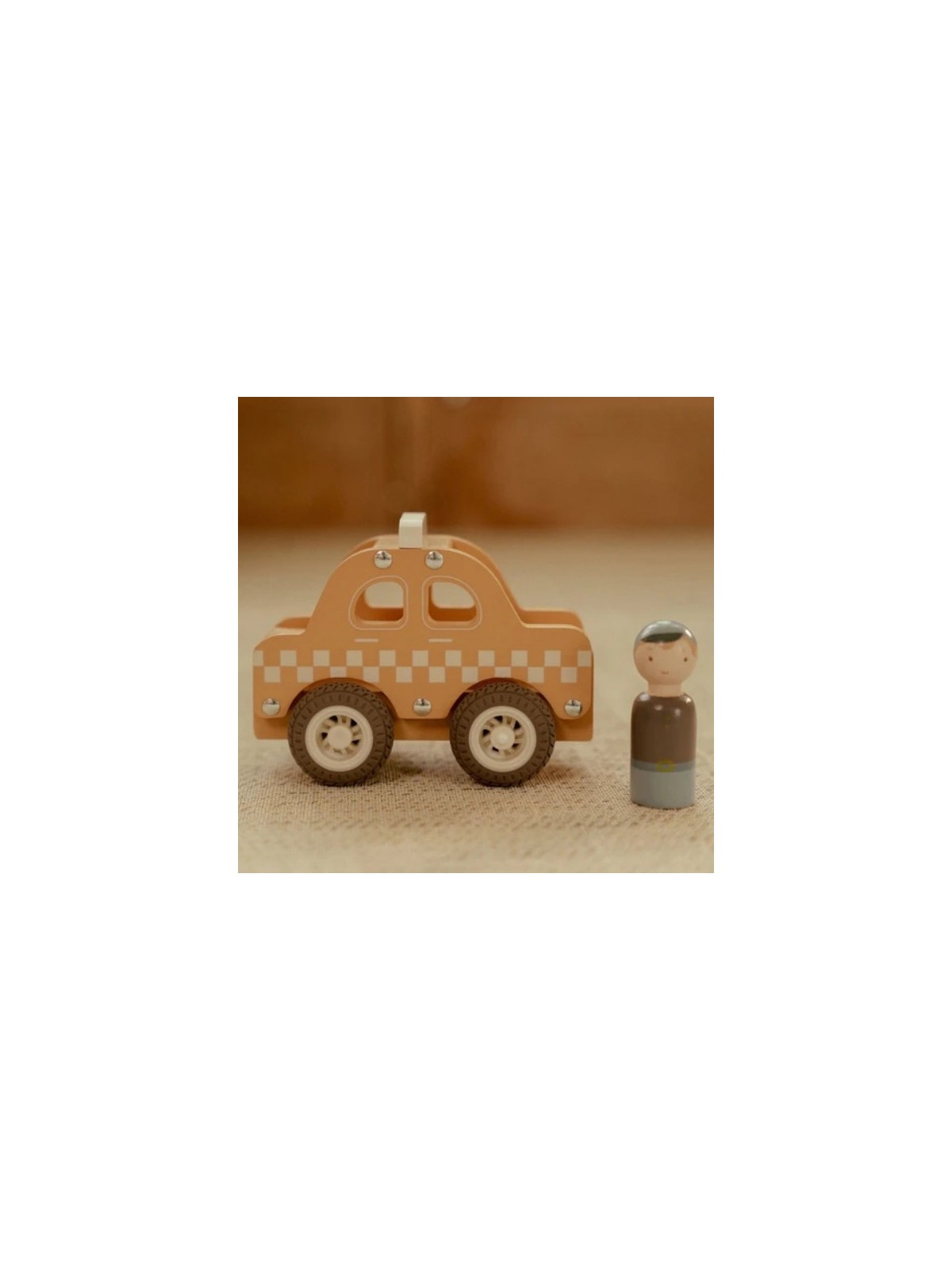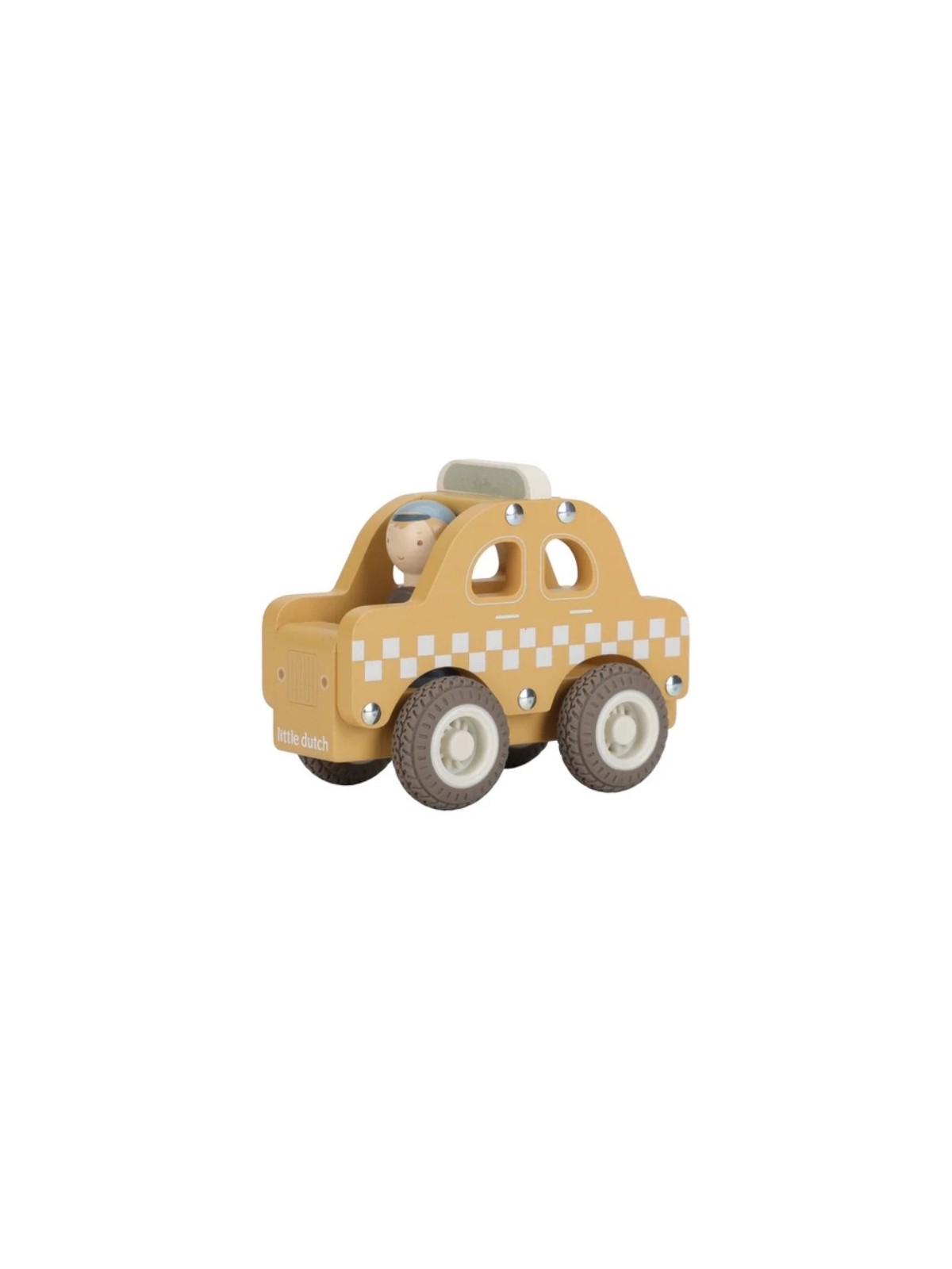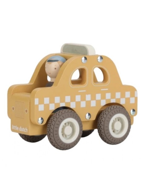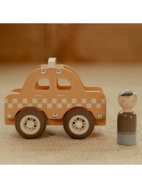Ce taxi en bois est prêt à emmener les passagers en toute sécurité à leur destination. Les roues en caoutchouc lui permettent de rouler en douceur et le chauffeur est prêt à partir. Conduisez à travers la ville animée, arrêtez-vous à la gare et ramenez tout le monde en toute sécurité à la maison.