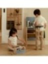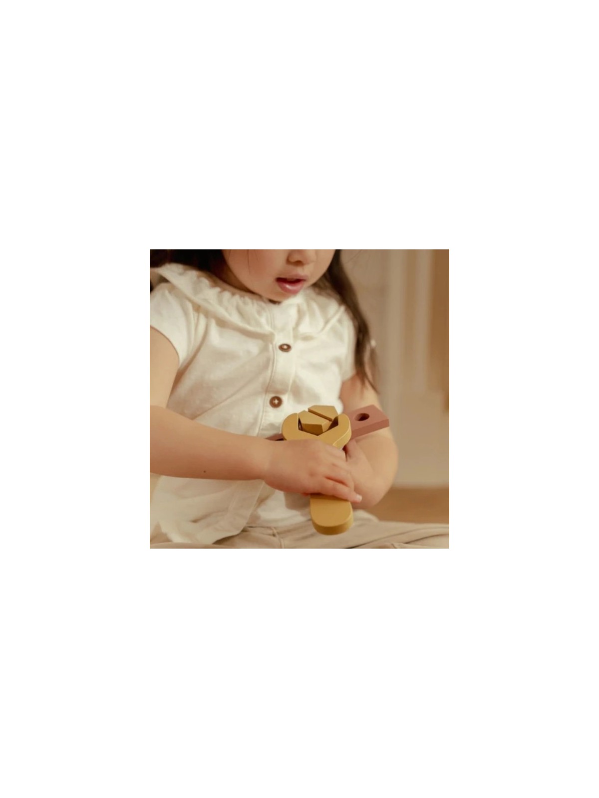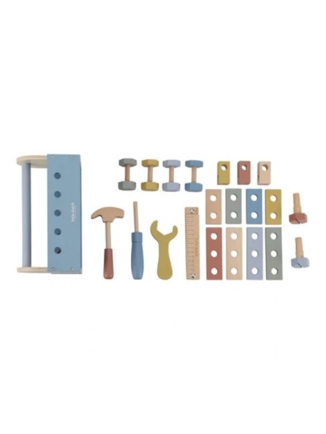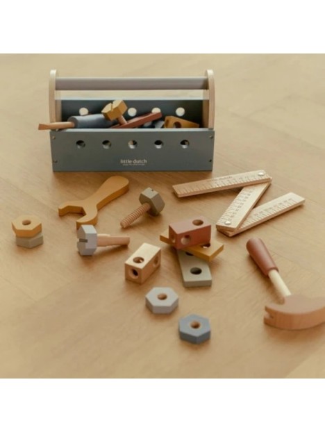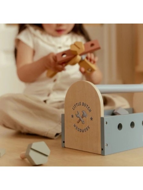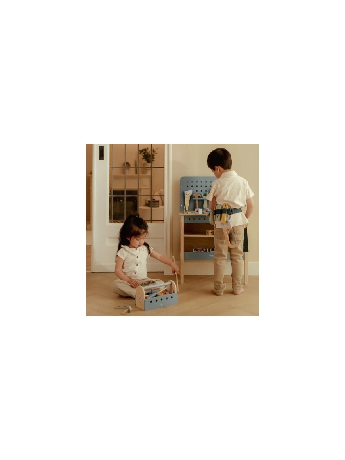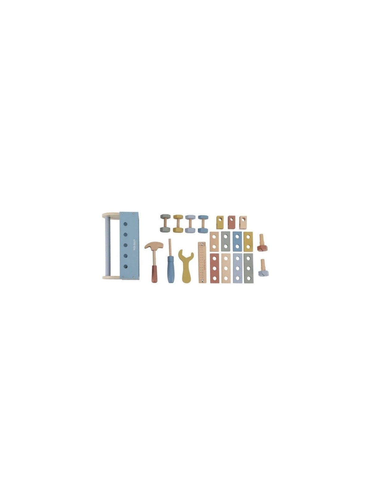 Tout ce dont un petit menuisier ou une petite menuisière a besoin ! Cette boîte à outils en bois contient un marteau, un tournevis et une clé à molette