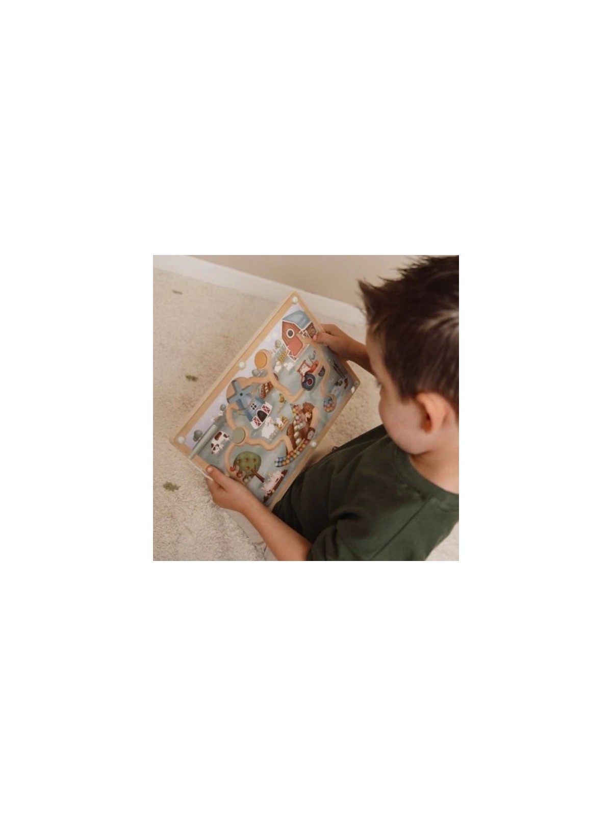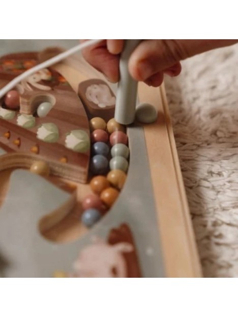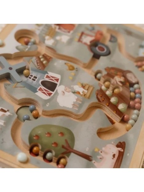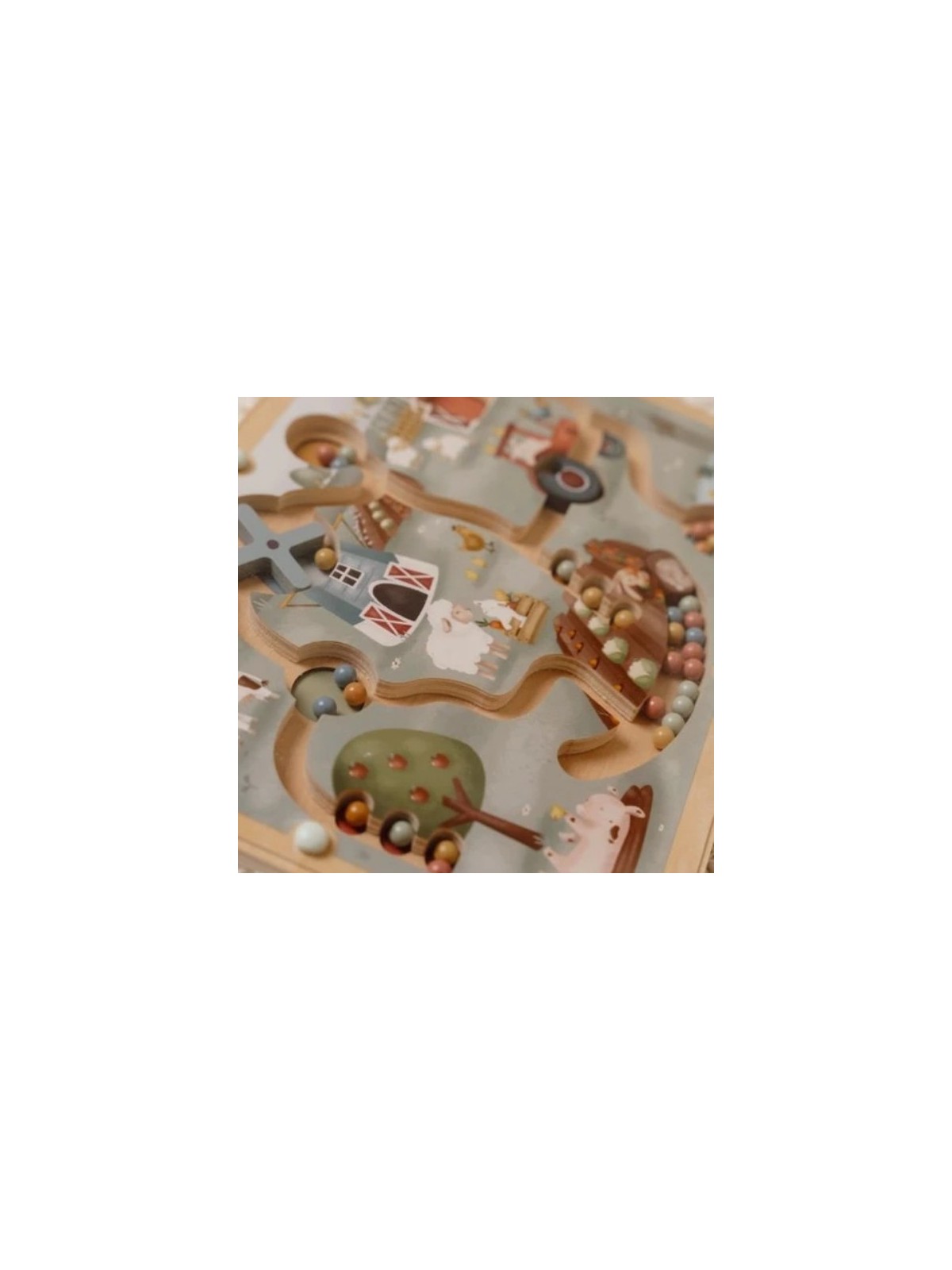 Veux-tu partir à l'aventure chez Little Farm ? Prends le stylet correspondant et attrape une ou plusieurs billes pour les déplacer à l'endroit de ton choix. Par exemple, tu pourrais amener toutes les billes bleues à l'étang et deux billes rouges au pommier. En chemin, tu pourrais rencontrer des obstacles comme la roue rotative du tracteur et les ailes du moulin. Où vas-tu emmener les billes ?
