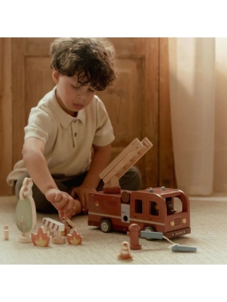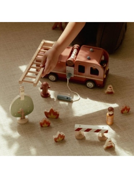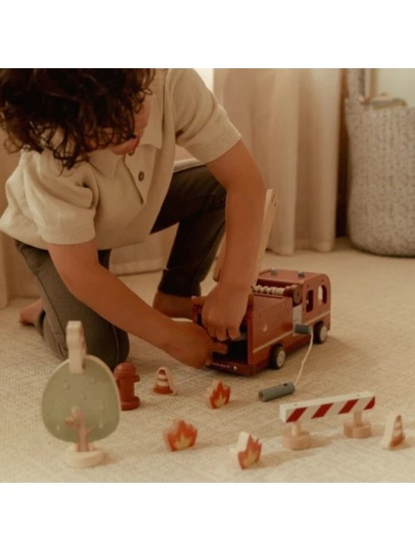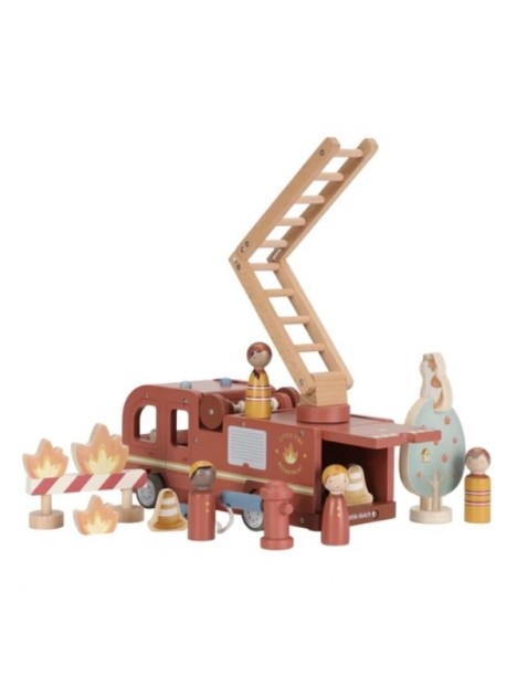 Camion de pompiers en bois et accessoires - LITTLE DUTCH