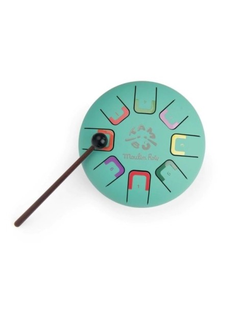 Le petit tambour à languettes de la collection Dans la Jungle de Moulin Roty est l'instrument idéal pour initier les enfants aux percussions à partir de 3 ans. Les 8 notes peuvent être jouées de plusieurs façons. A l'aide des baguettes, des mains ou des pics à doigts. Cet instrument, aussi appelé Tongue drum, contribuera à l'éveil musical de votre enfant.