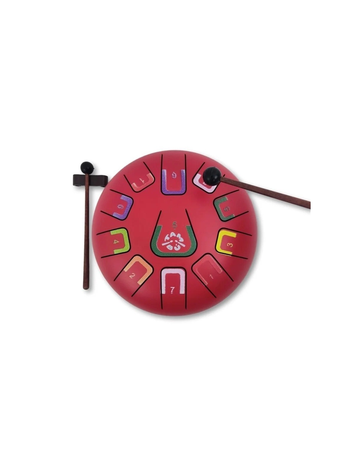 11 notes indiquées par une couleur et un chiffre pour jouer avec les mains, le bout des doigts ou à l'aide de baguettes.