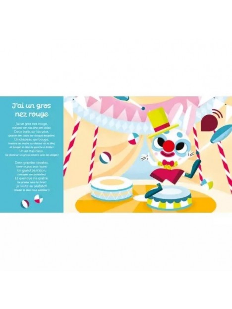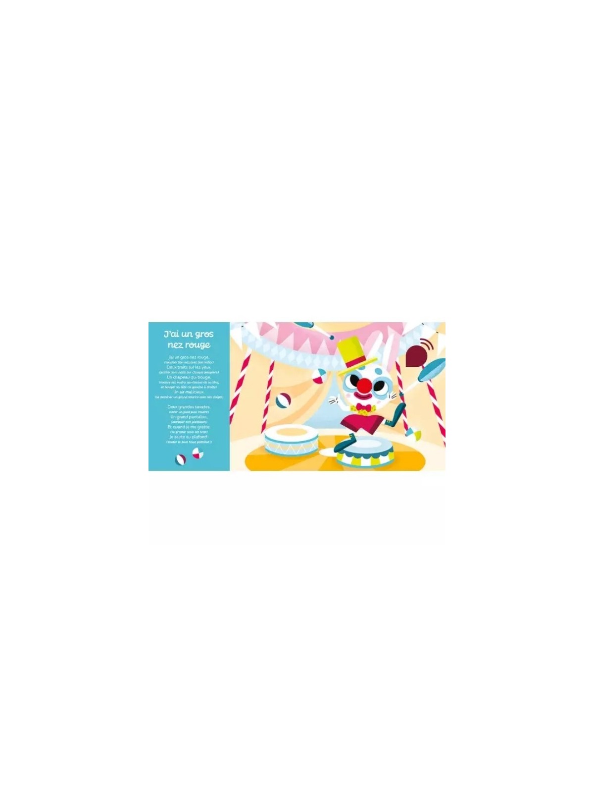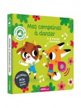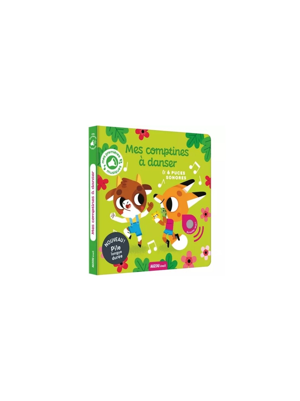 Des livres sonores qui proposent 6 doubles pages et 6 sons. La longévité des piles est exceptionnelle : elle offre près de 5h d'écoute (versus 1h30 pour la majorité de la concurrence). Mes premiers musiques : Des comptines de l'enfance à écouter et à danser, mis en scène par des illustrations rondes et colorées ! Ici, on retrouve : Ainsi font, font, font, Jean Petit qui danse, Savez-vous planter les choux ?, J'ai un gros nez rouge, Un petit pouce qui danse et C'est la baleine.