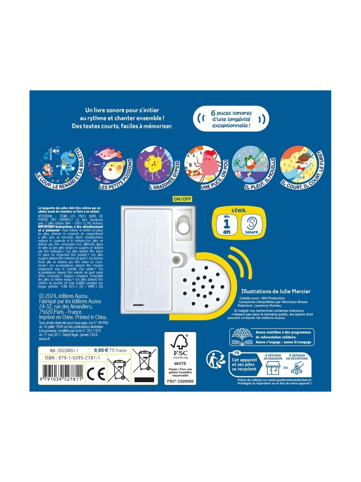 6 puces sonores d'une très belle qualité auditive et des piles AAA faciles à changer !