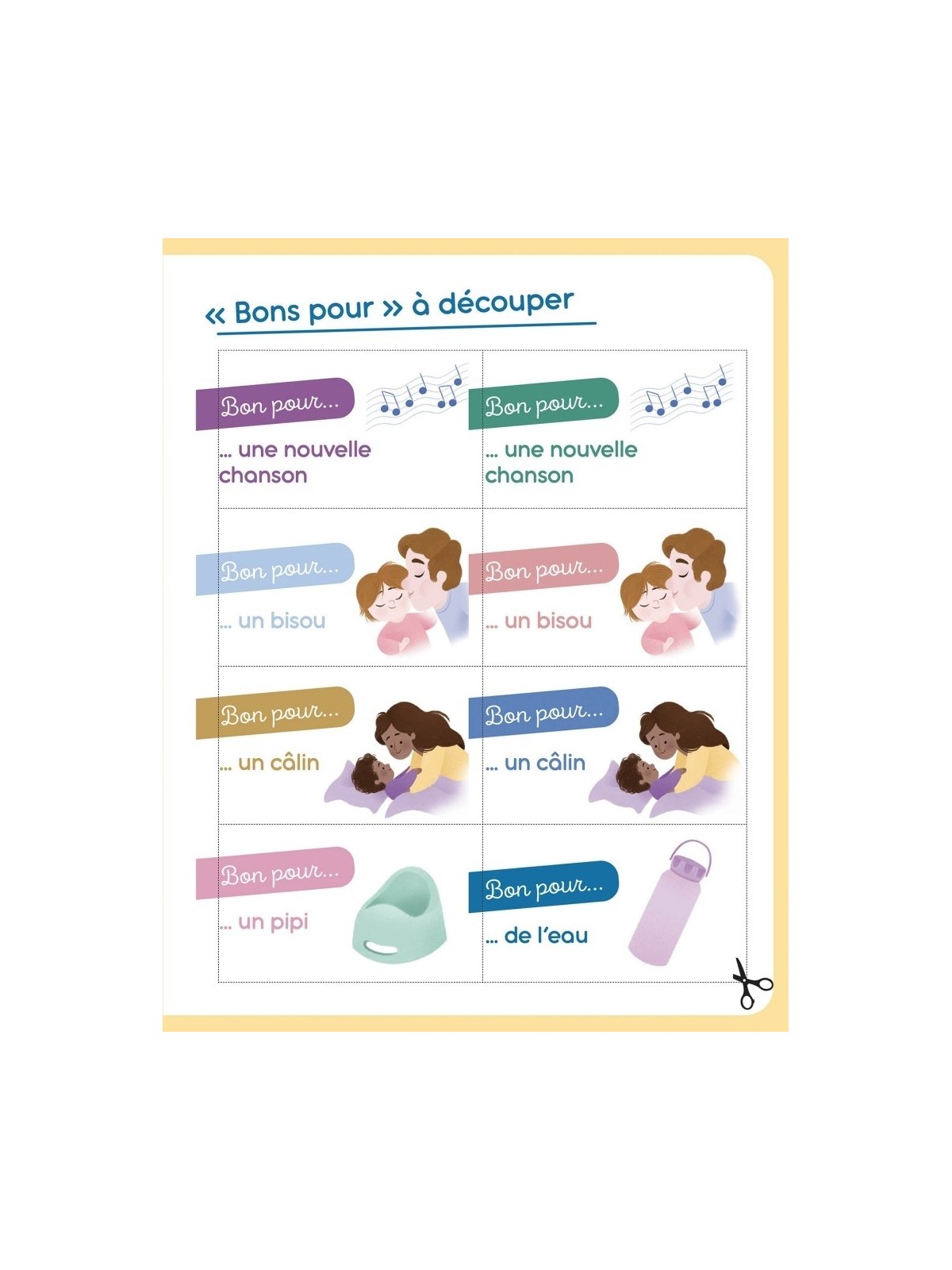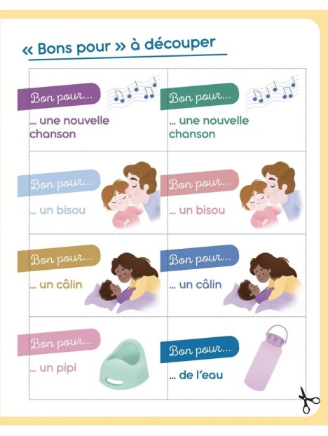 Le rituel de la sieste est aussi inclus, ainsi que des "bons pour" pour limiter les rappels et un petit diplôme pour féliciter l'enfant à la mise en place du rituel.