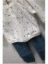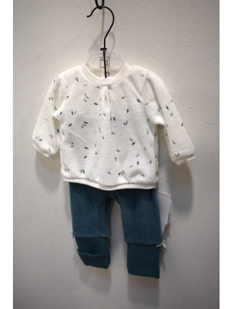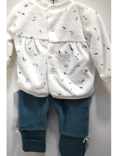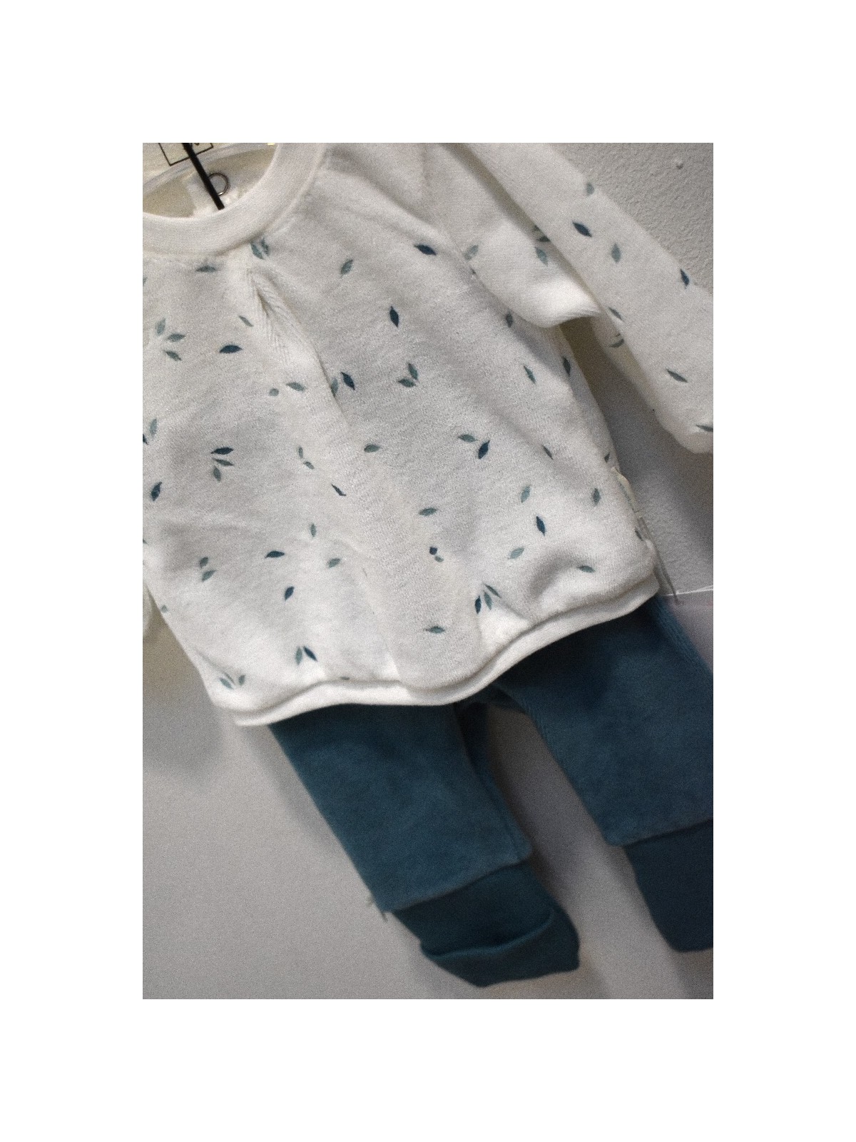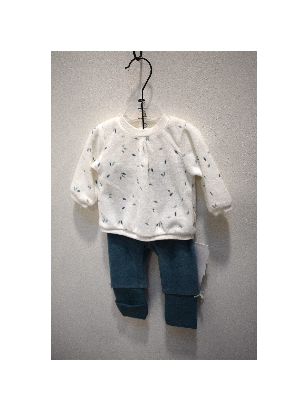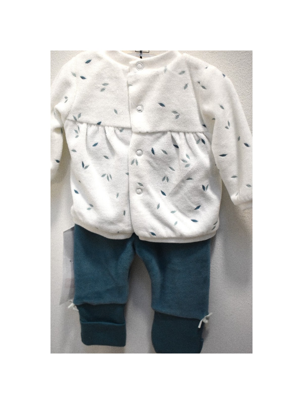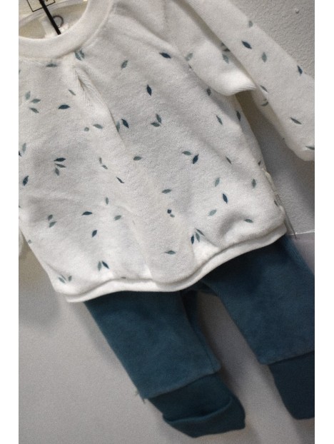 Pyjama 2 pièces bleu canard et blanc motif feuilles