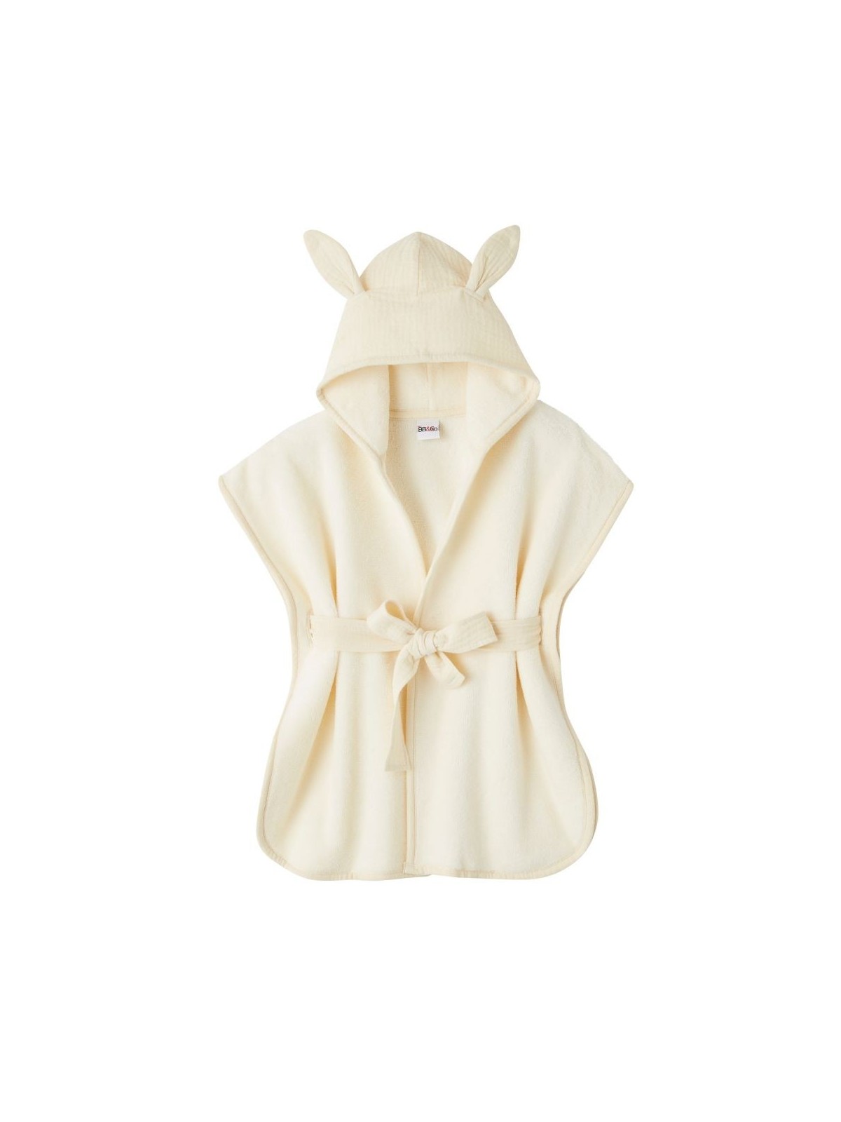 Ce peignoir en éponge bambou avec sa capuche comprenant des petites oreilles de lapin et une ceinture en double gaze de coton.