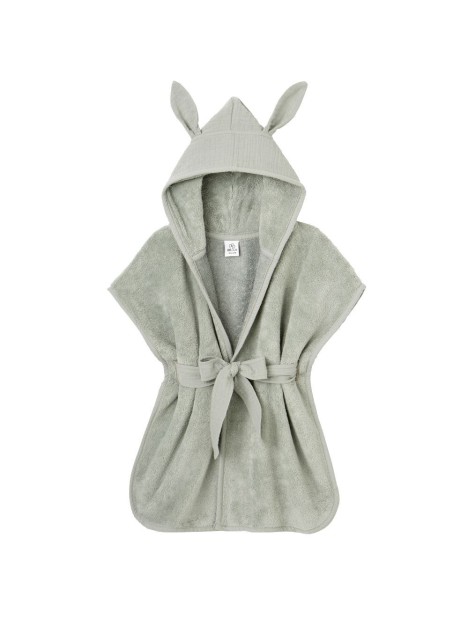 Ce peignoir en éponge bambou avec sa capuche comprenant des petites oreilles de lapin et une ceinture en double gaze de coton.