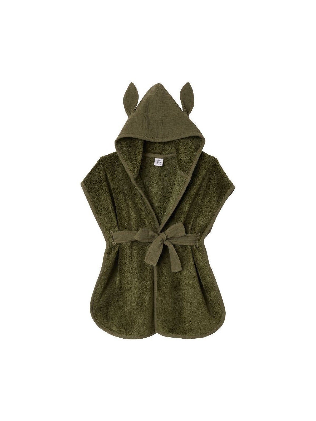 Ce peignoir en éponge bambou avec sa capuche comprenant des petites oreilles de lapin et une ceinture en double gaze de coton.