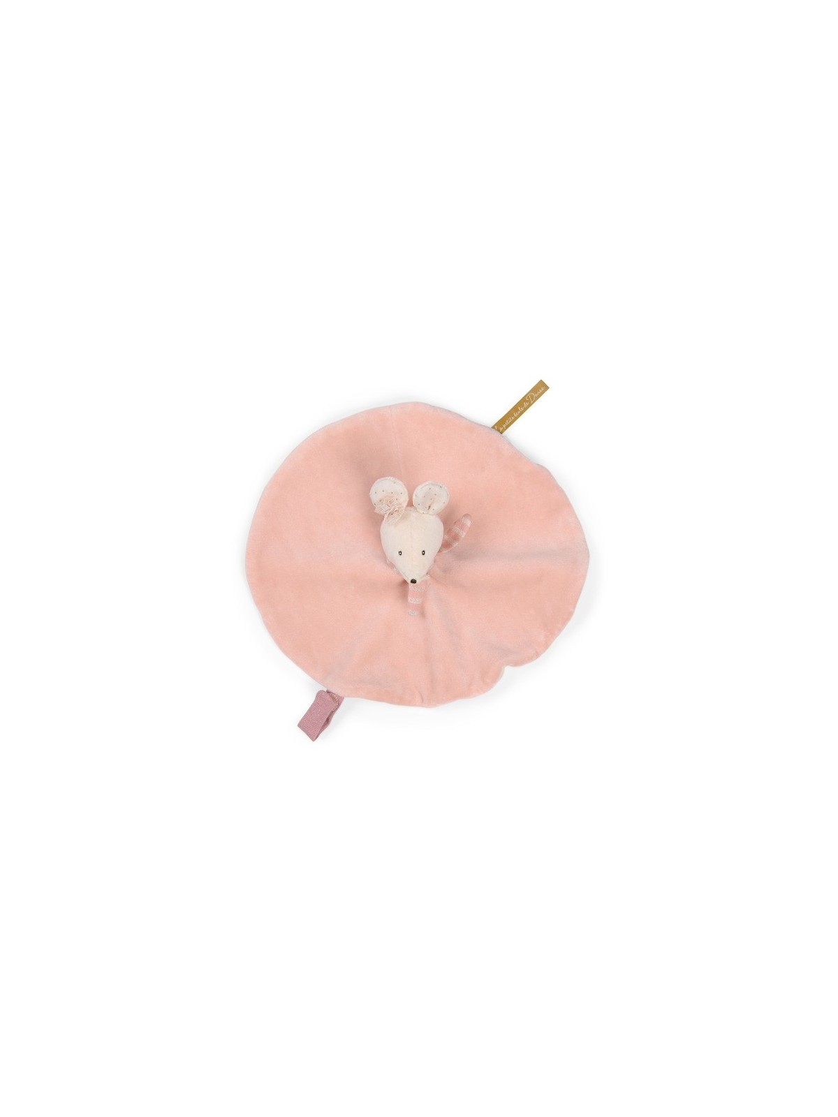 Doudou souris au doux visage brodé pour accompagner bébé.