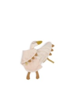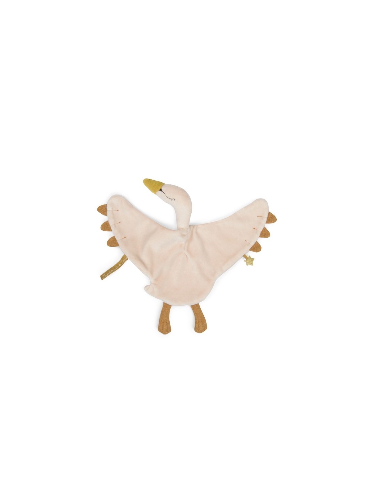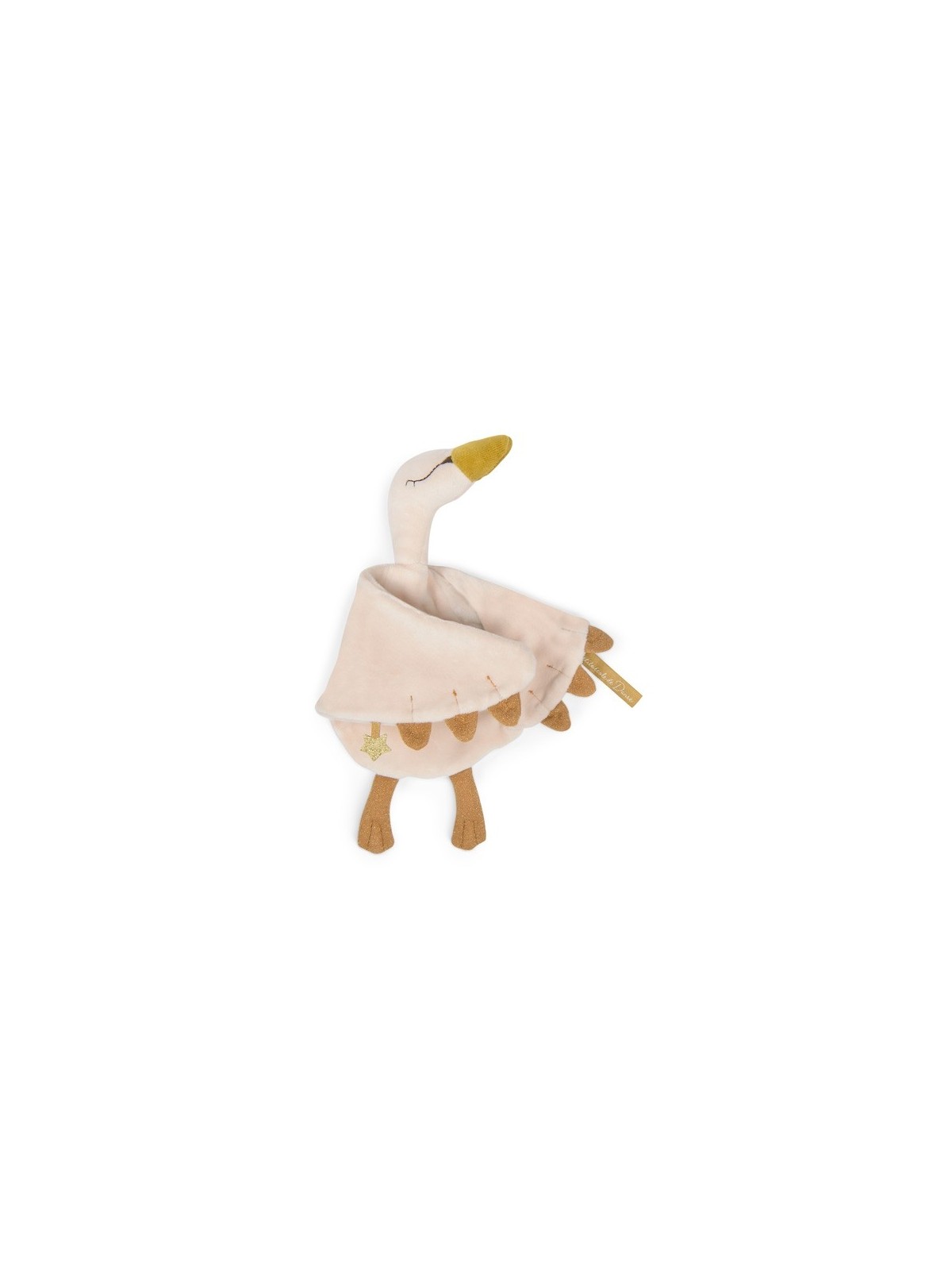 Doudou cygne au doux visage brodé et bec doré pour accompagner bébé.